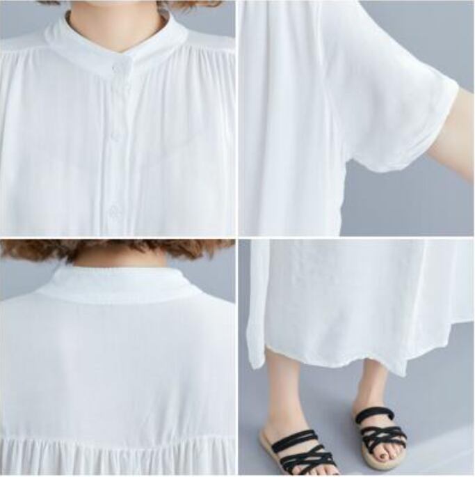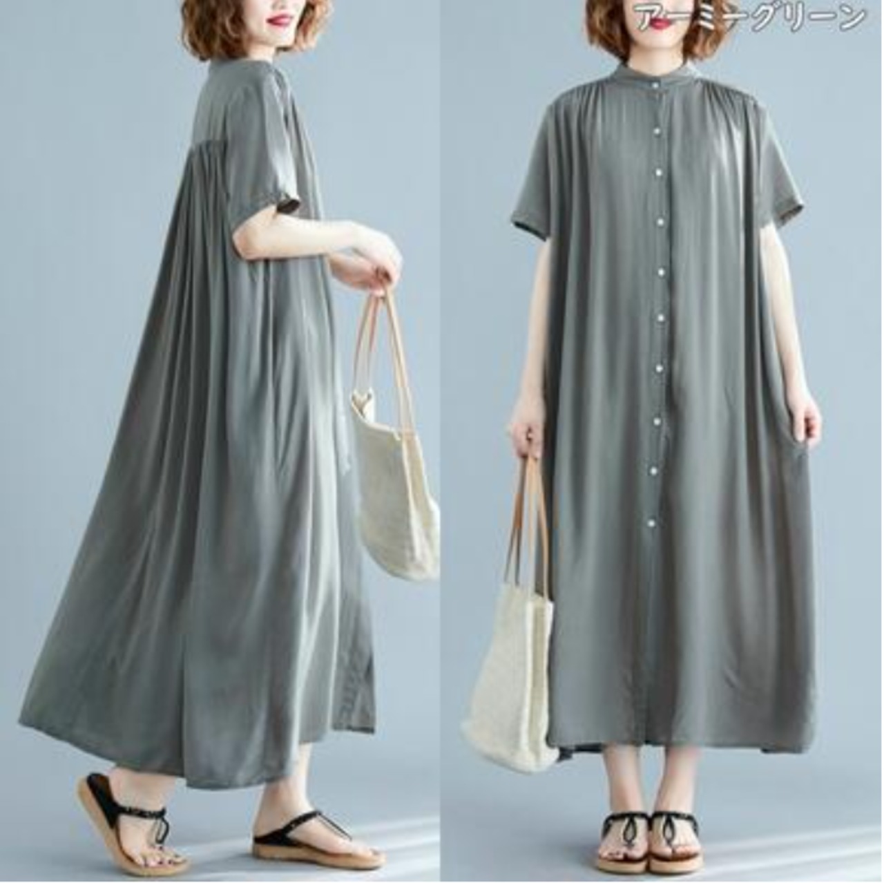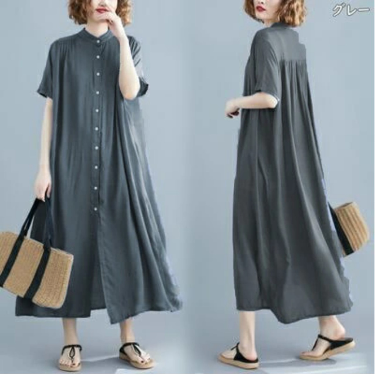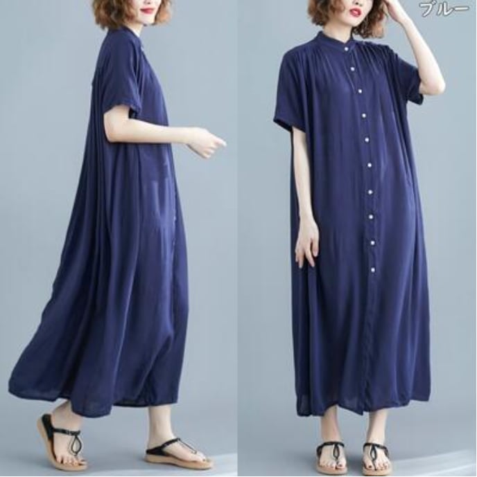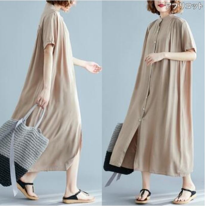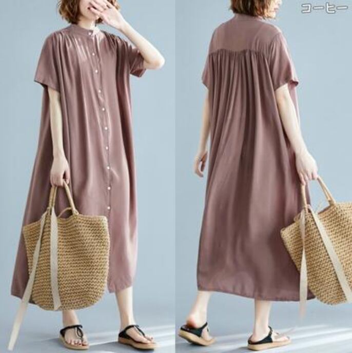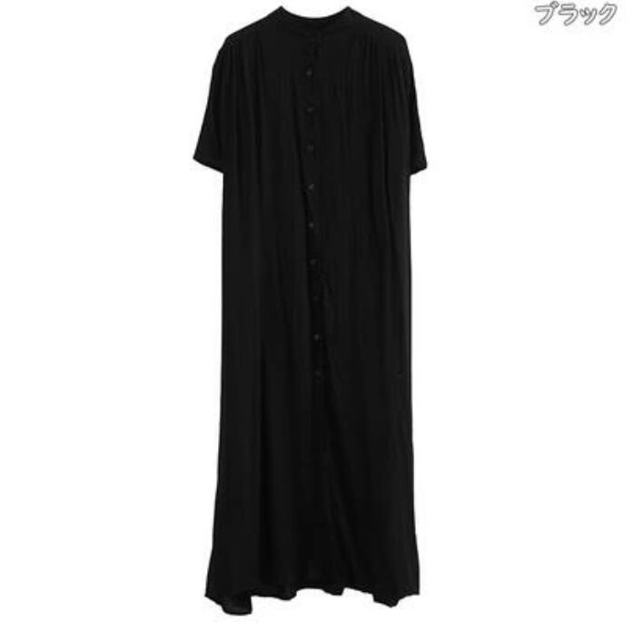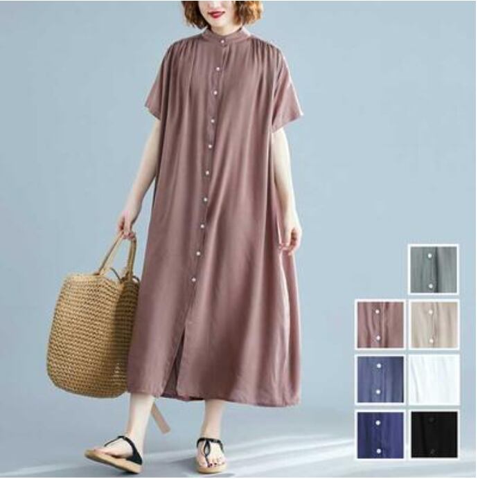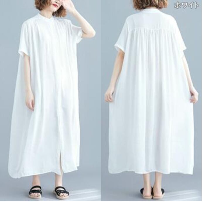 全7色 シャツワンピース アウター 前開き シンプル ゆったり白 ワンピース ロング 春 夏 半袖 カジュアル おしゃれ レディース 春 夏 秋 可愛い ドレス ロング丈 マキシ丈 バンドカラー スタンドカラー 大きいサイズ ビッグシルエット ブラック 黒 ホワイト グリーン グレー ブラウン 前ボタン 30代 40代 50代