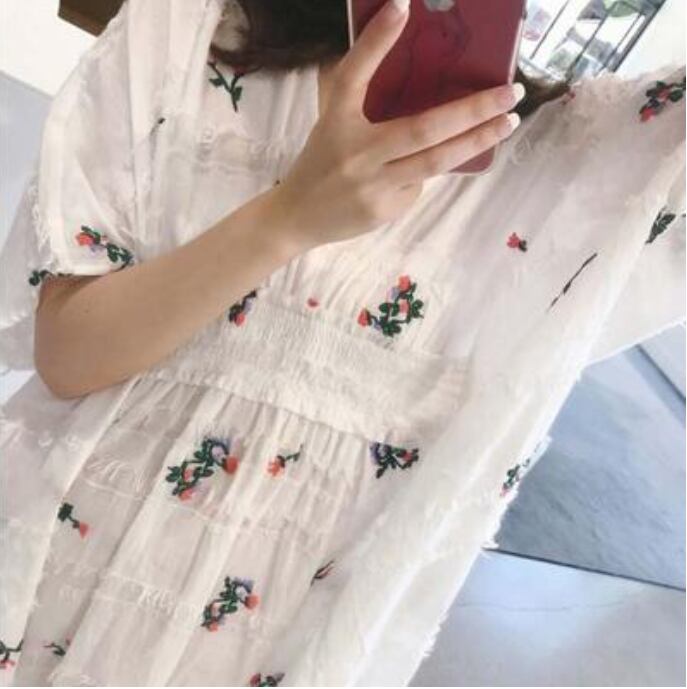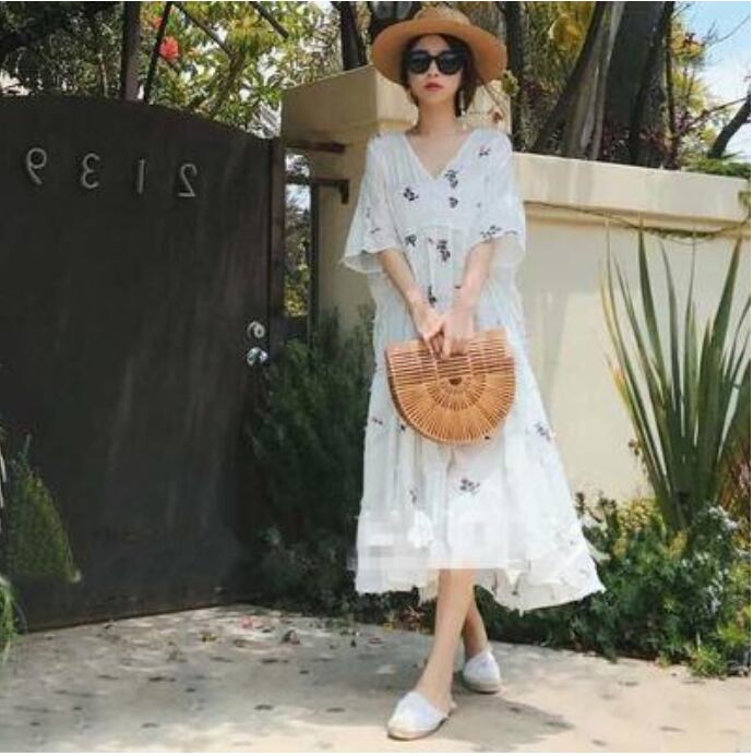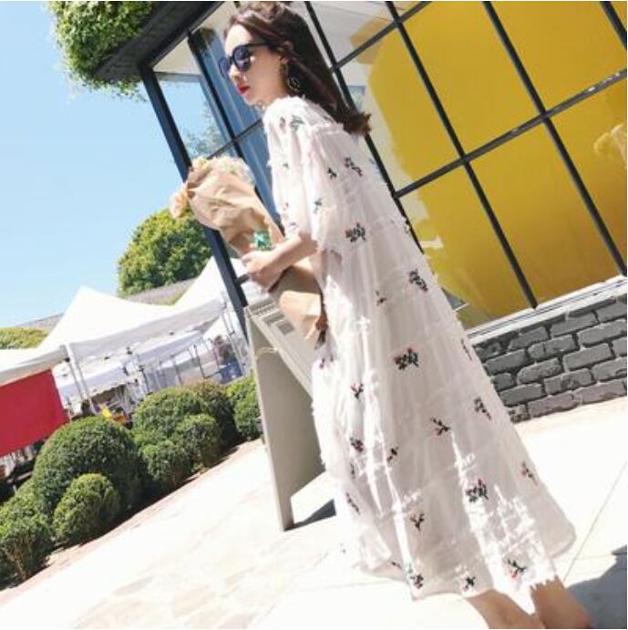 ゆったり フェミニン 薄手 涼しいリネン ワンピース ナチュラル ロング 大きいサイズ 半袖 ティアード カジュアル おしゃれ レディース リネン コットン 麻 綿 夏 春夏 春秋 可愛い ワンピ ドレス ロング丈 ミモレ丈 Vネック 花柄 Aライン 体型カバー リゾート ホワイト 白 20代 30代 40代 50代