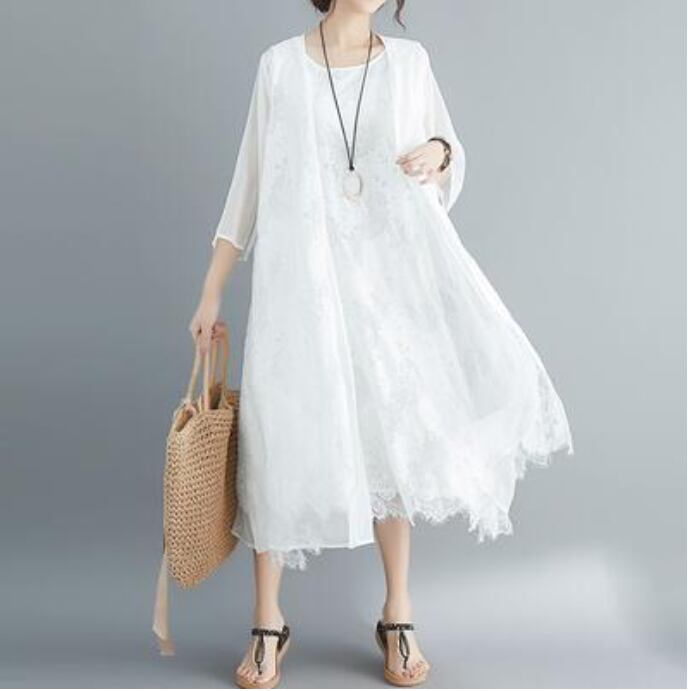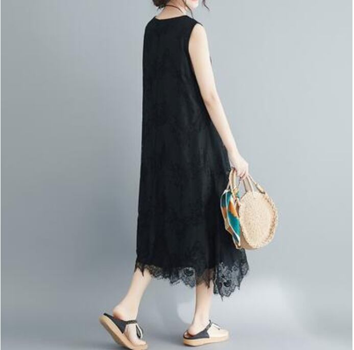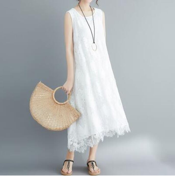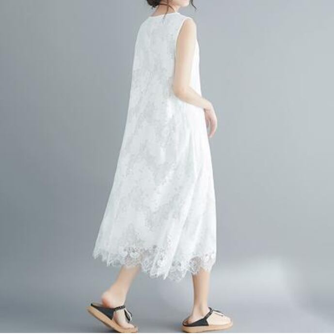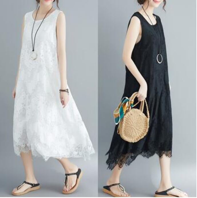 全2色 ワンピース ロング丈 カジュアル きれいめ 春 夏 ノースリーブ おしゃれ レディース レース 春夏 秋 可愛い ワンピ ドレス ミモレ丈 シンプル ゆったり リラックス フェミニン 体型カバー 大きいサイズ XL 2XL ホワイト 白 ブラック 黒 20代 30代 40代 50代