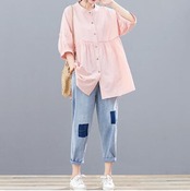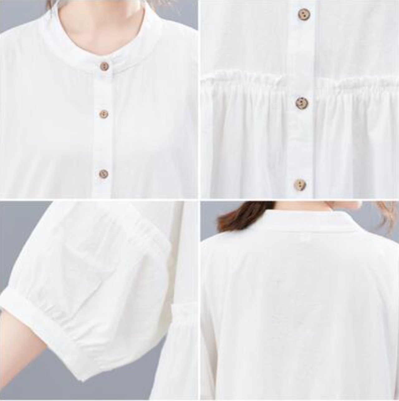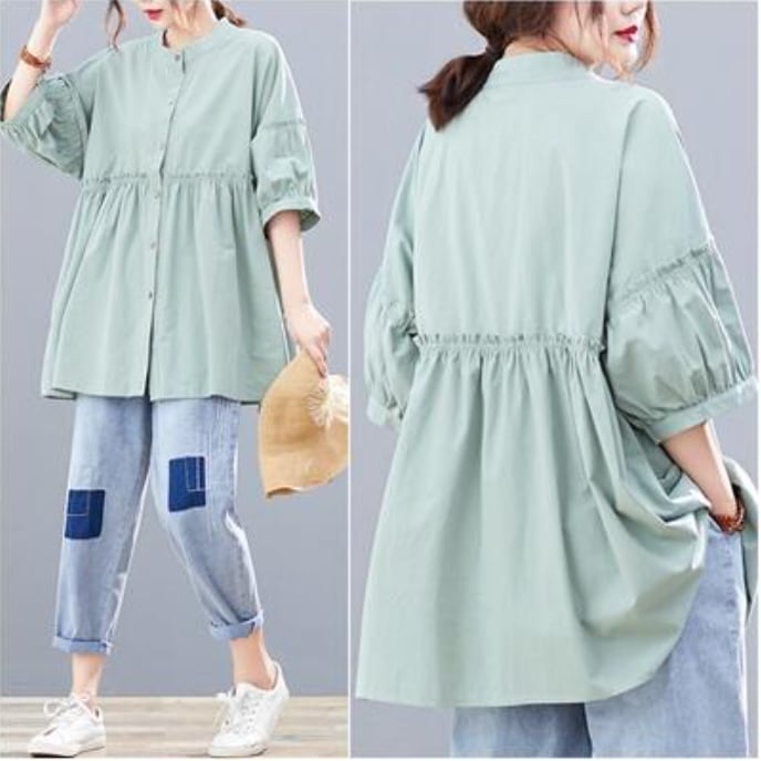 全4色 麻 リネン シャツ ブラウス コットン 薄手 ナチュラル 五分袖 涼しい リネン混 綿 体型カバー ゆったり リラックス きれいめ カジュアル ティアード 可愛い チュニック おしゃれ 春 夏 春夏 大きいサイズ グリーン イエロー ホワイト 白 ピンク 20代 30代 40代 50代