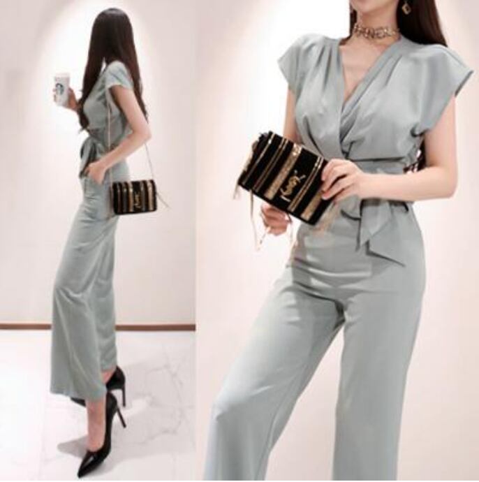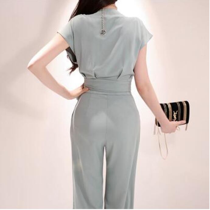 セットアップ 2点セット レディース きれいめ カジュアル エレガント おしゃれ 春 夏 パンツセット ロング丈 フェミニン パンツ かっこいい 半袖 ブラウス ハイウエスト フレンチスリーブ ウエストリボン 薄手 涼しい 春夏 大きいサイズ グレー 20代 30代 40代 50代