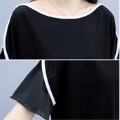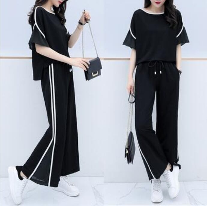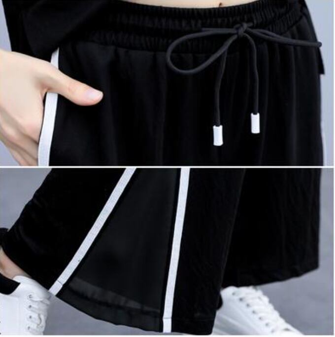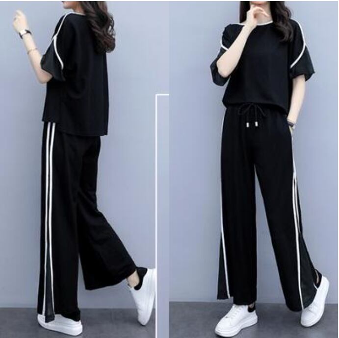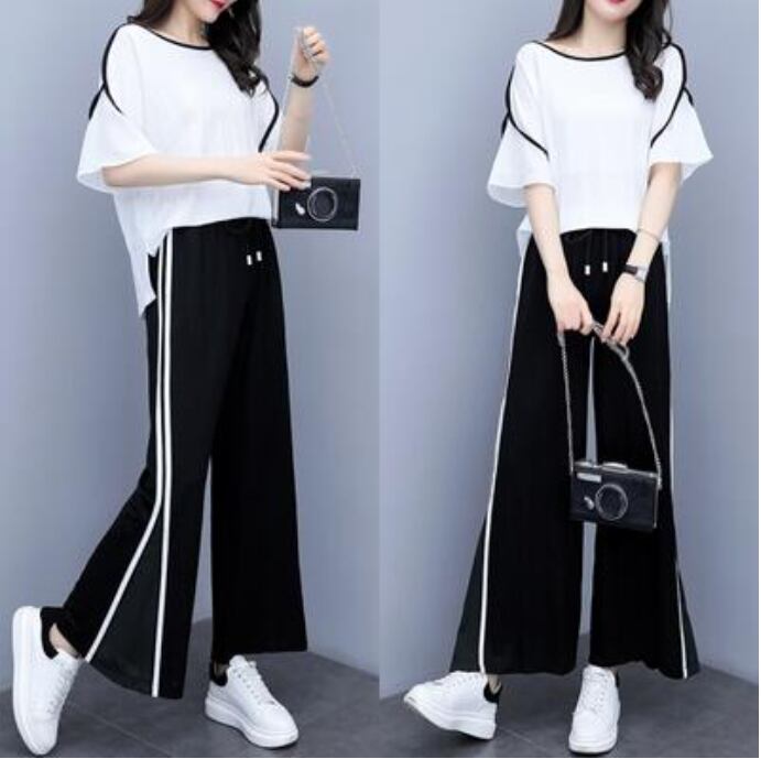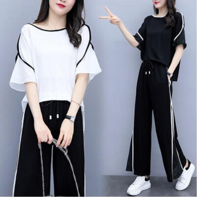全2色 セットアップ 2点セット レディース きれいめ カジュアル スポーティー おしゃれ 春 夏 パンツセット ロング丈 フェミニン ブラウス かっこいい 半袖 カットソー ウエストゴム 楽ちん シフォン 春夏 大きいサイズ ブラック 黒 ホワイト 白 20代 30代 40代 50代