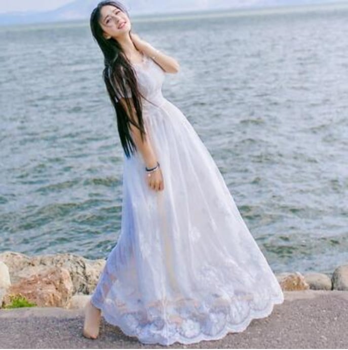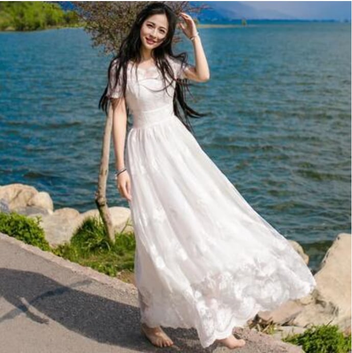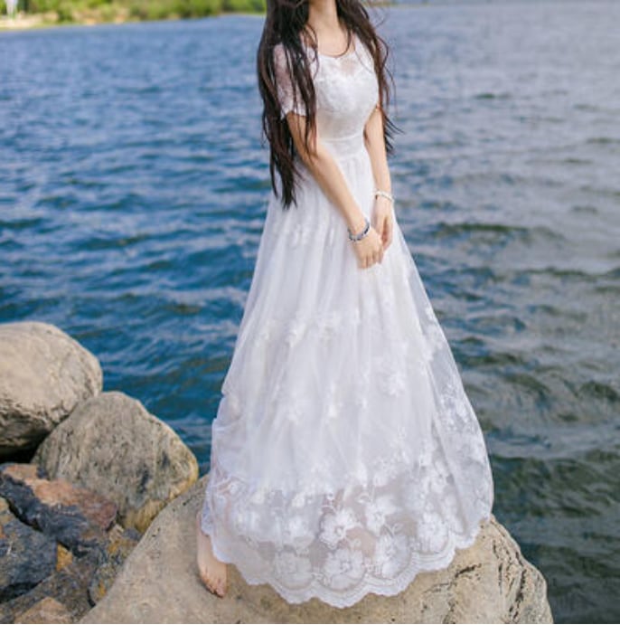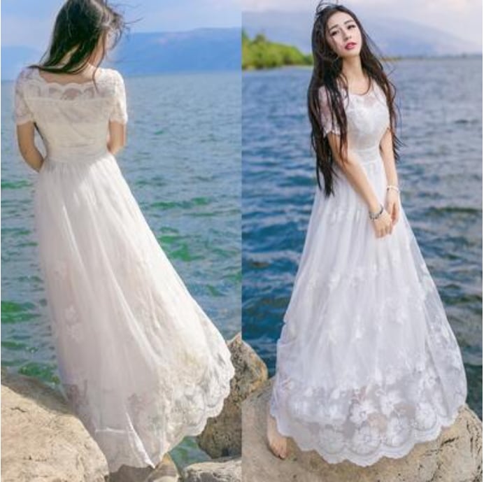 結婚式 ワンピース 袖あり レディース ロング丈 マキシ丈 ドレス きれいめ ロングワンピース フォーマル エレガント レース ワンピ フェミニン 大きいサイズ 2XL XL 半袖 二次会 発表会 セレモニー 謝恩会 ハイウエスト ホワイト 白 20代 30代 40代 50代