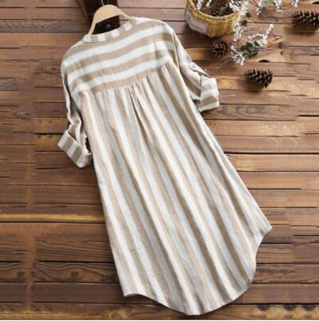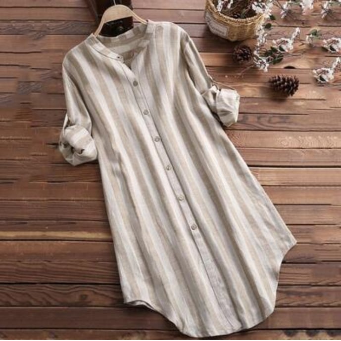 汗ばむ季節にもサラッと着られる綿麻のシャツチュニック。