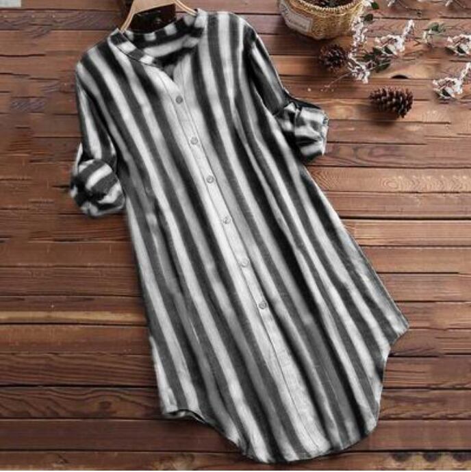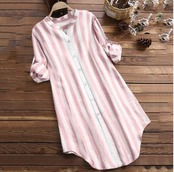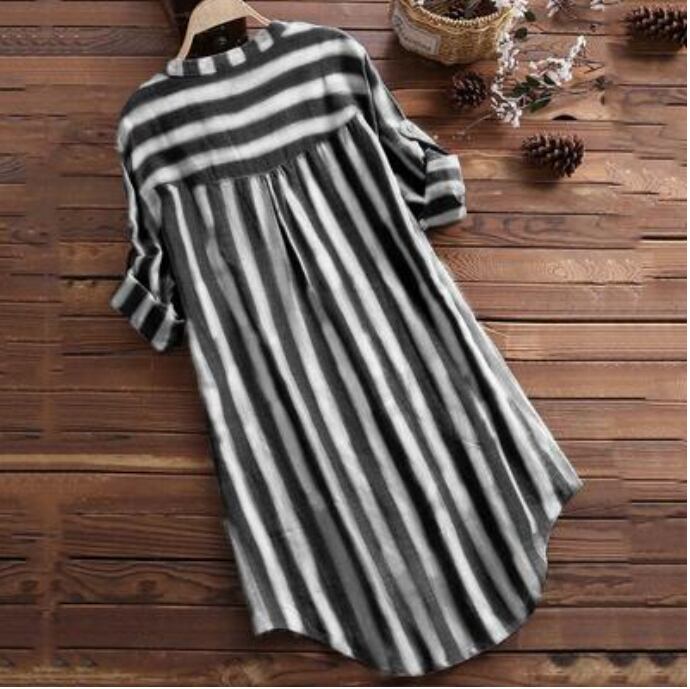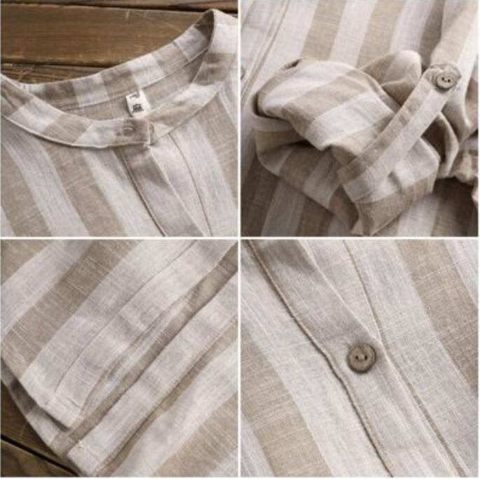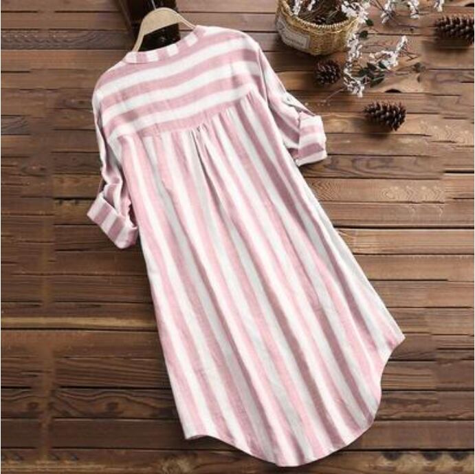 全3色 可愛い カジュアル 大きいサイズ 麻 リネン シャツ ブラウス コットン 薄手 ナチュラル 長袖 五分袖 涼しい リネン混 綿 体型カバー ゆったり リラックス チュニック おしゃれ レディース ストライプ ブラック 黒 カーキ ピンク 春 夏 秋 20代 30代 40代 50代
