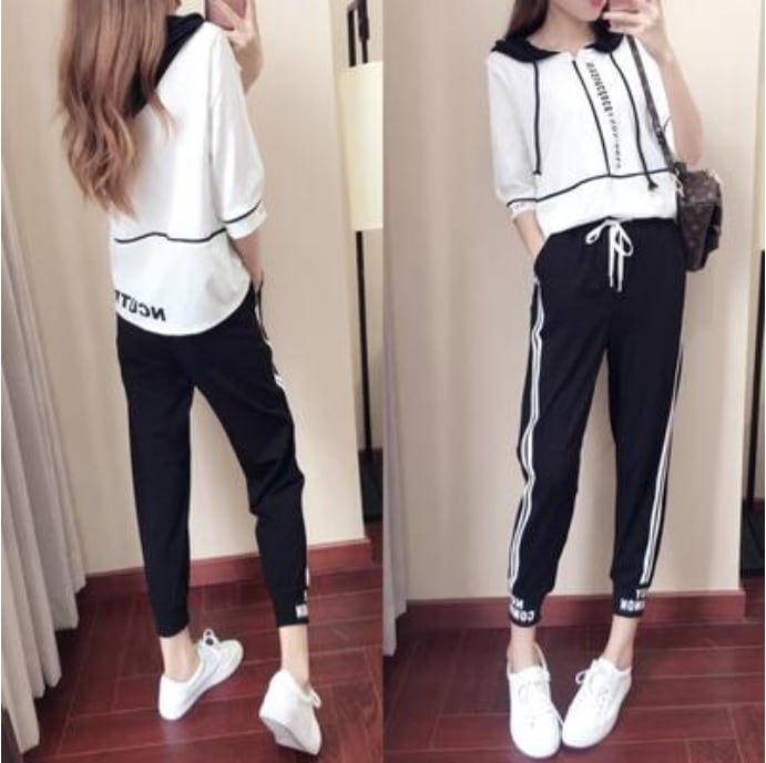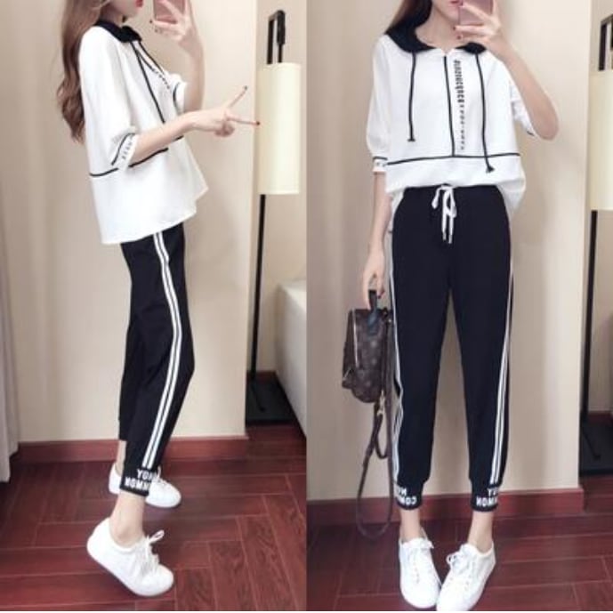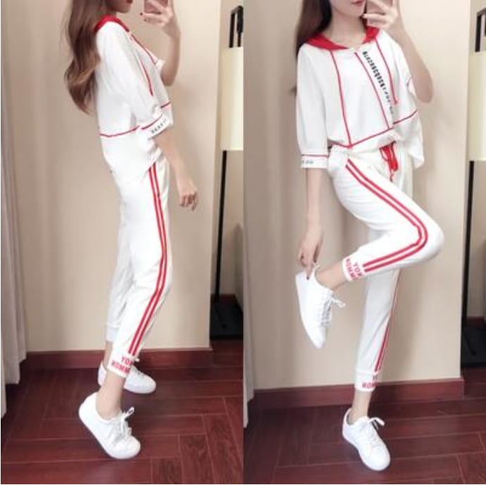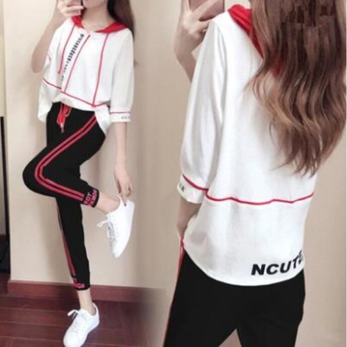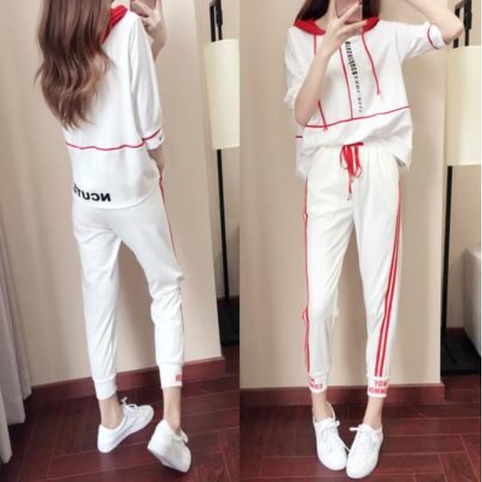全3色 リラックス 楽ちん ルームウェア セットアップ 2点セット レディース カジュアル スポーティー おしゃれ パンツセット ジャージ フード付き かっこいい 五分袖 ウエストゴム 大きいサイズ XL 2XL 3XL ホワイト 白 ブラック 黒 レッド 春 夏 秋 20代 30代 40代 50代