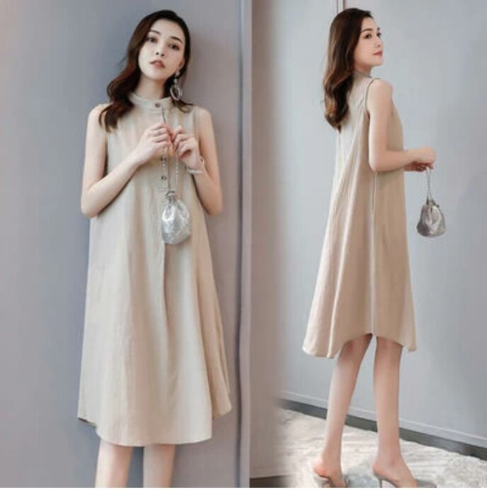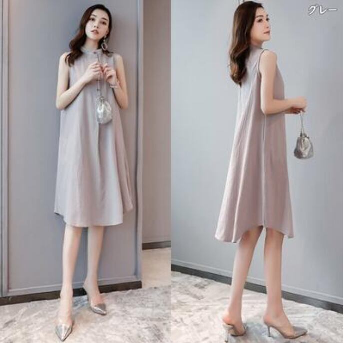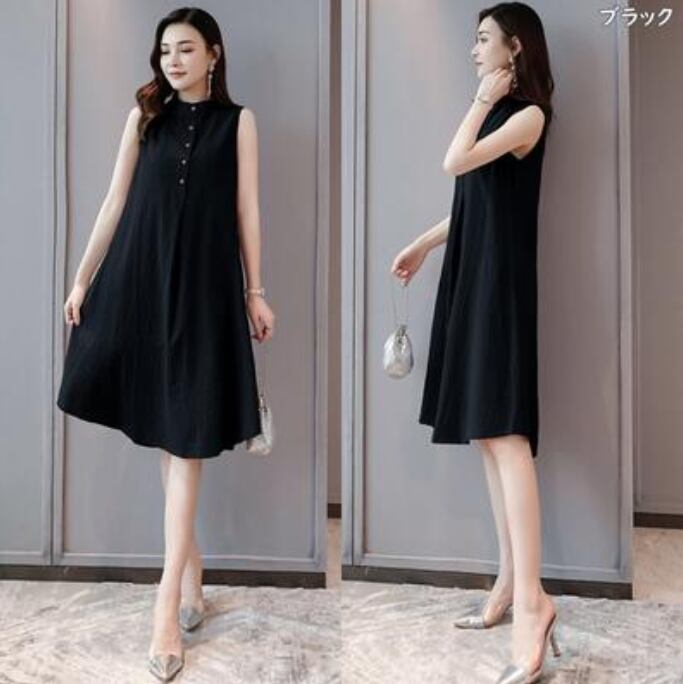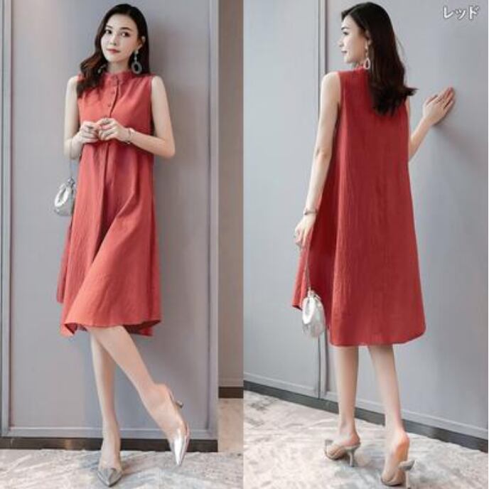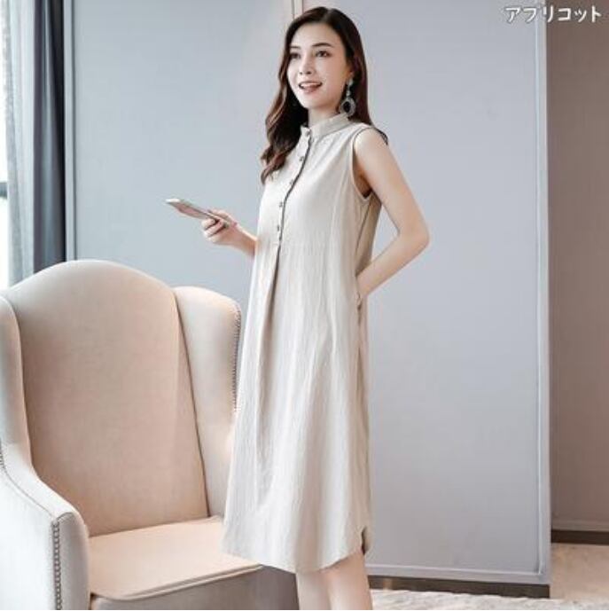 全4色 スタンドカラー カジュアル フェミニン ドレス リネン ワンピース ナチュラル ノースリーブ 薄手 涼しい コットン 綿 麻 体型カバー ゆったり お呼ばれ レディース ワンピ ベージュ ブラック 黒 レッド グレー 大きいサイズ リネン混 春 夏 秋 20代 30代 40代 50代