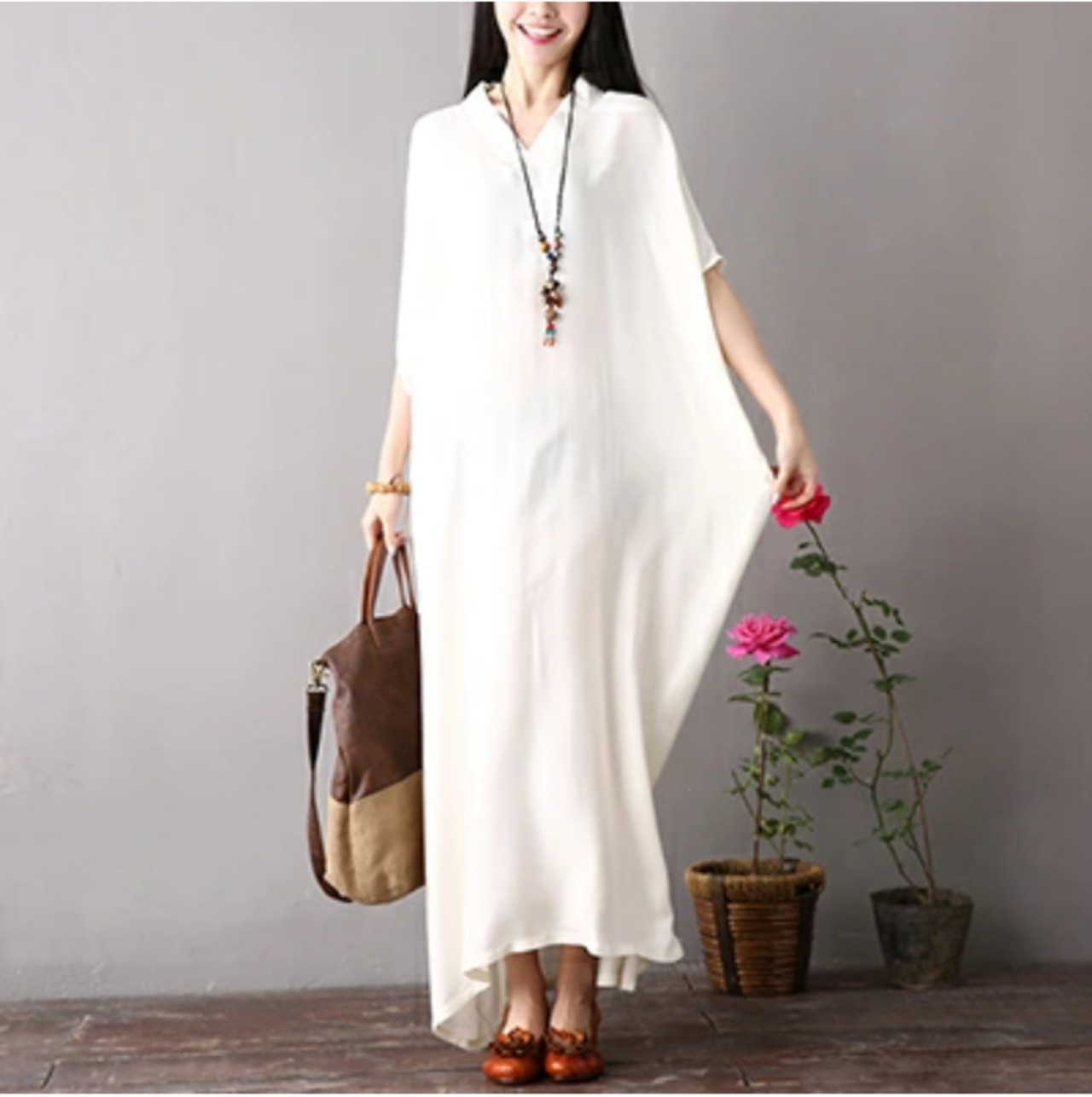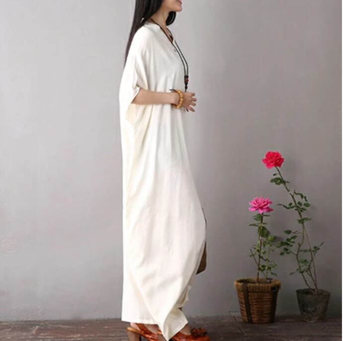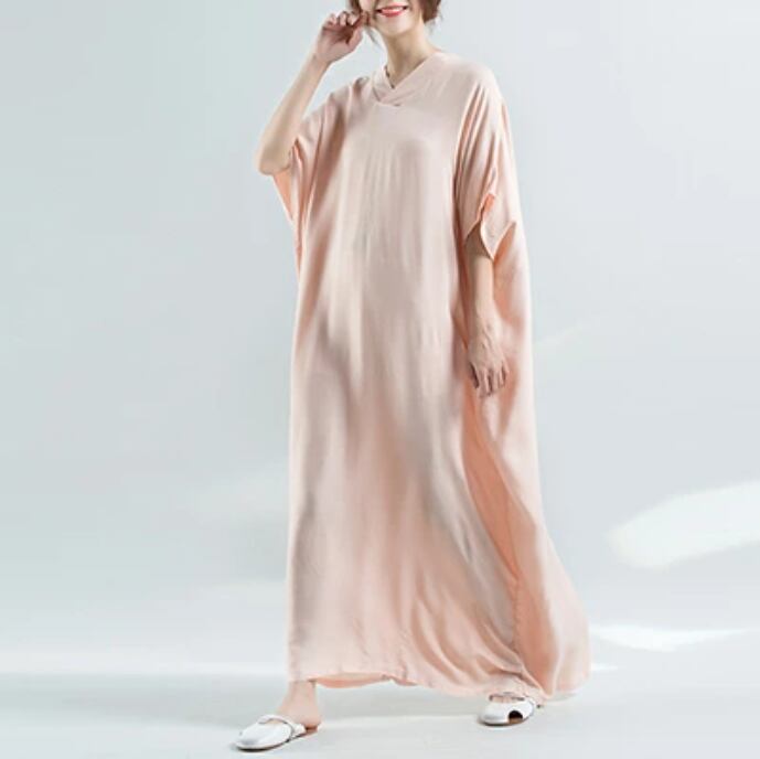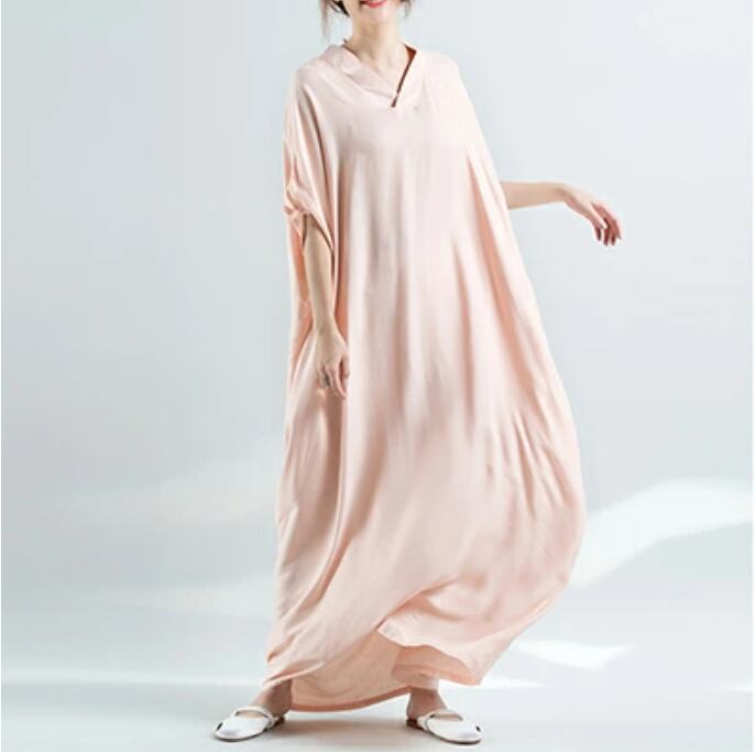 全4色 ワンピース マキシ丈 薄手 涼しい 半袖 レーヨン 体型カバー ロング丈 ワンピ ドレス おしゃれ レディース 可愛い ビッグシルエット ゆったり ドルマンスリーブ 春 夏 春夏 大きいサイズ ピンク ホワイト 白 イエロー ビビッドカラー 20代 30代 40代 50代