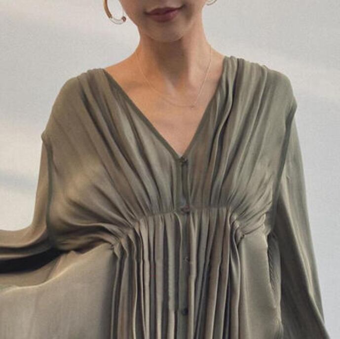 ギャザーをよせたふんわりシルエットが女性らしさを引き立てます♪