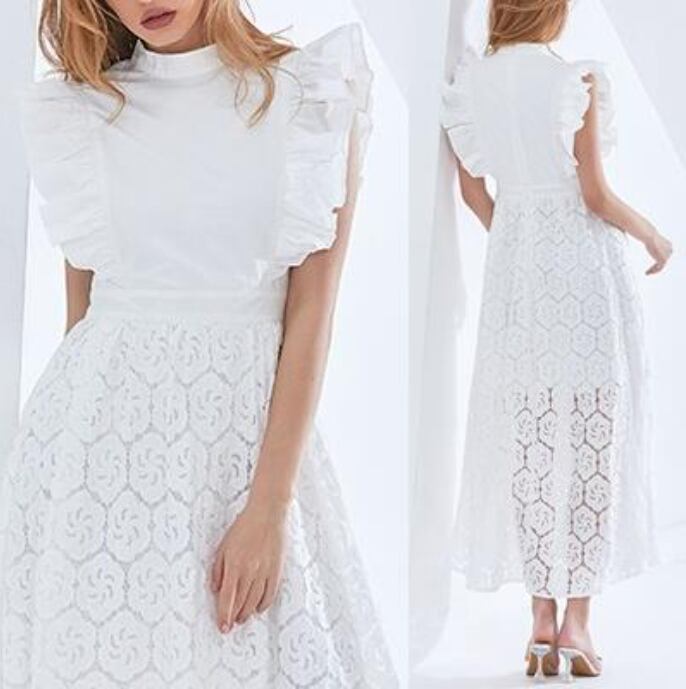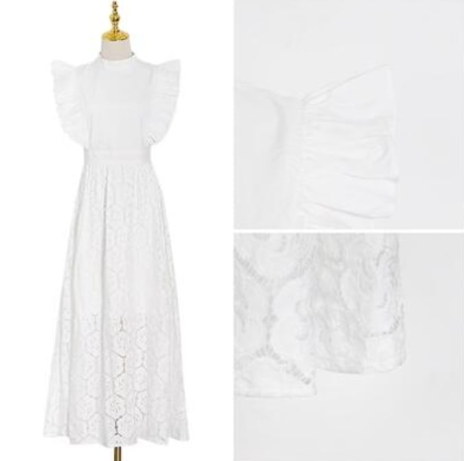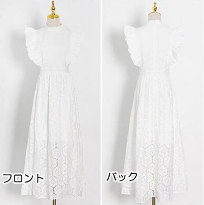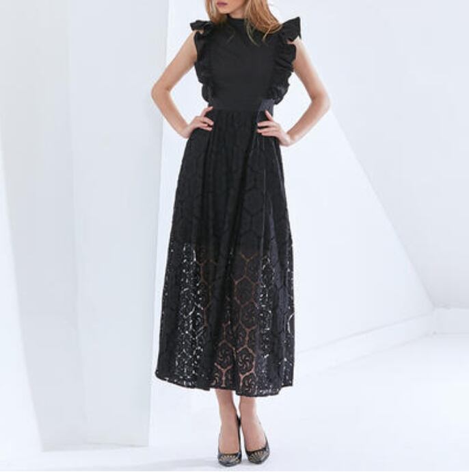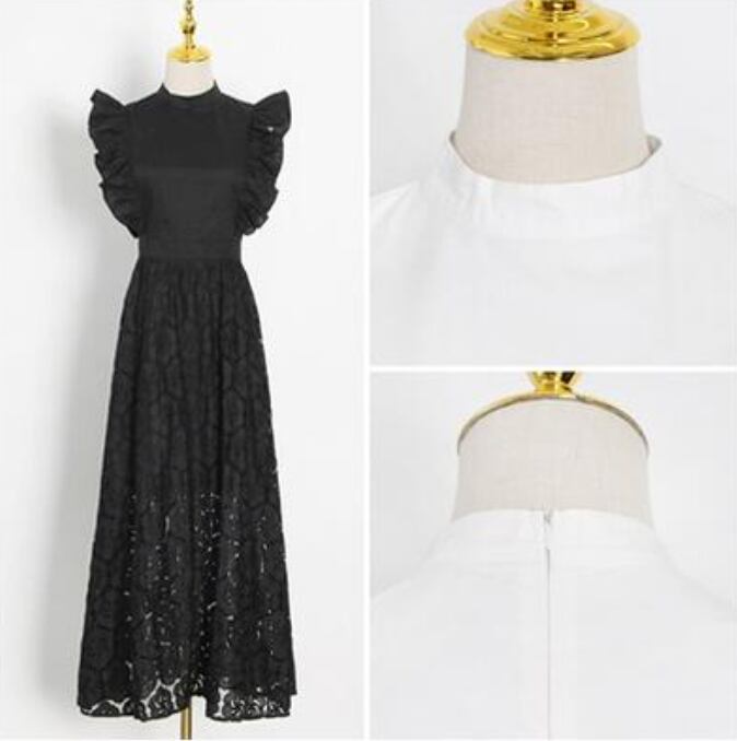 全2色 大きいサイズ XL 2XL 3XL白 黒 ワンピース おしゃれ 夏 きれいめ ノースリーブ ロング丈 ミモレ丈 エレガント レディース ワンピ ドレス レース 可愛い スカート かぎ編み風 スリム フレア かっこいい ハイウエスト スタンドネック ブラック ホワイト 韓国 春夏 秋 20代 30代 40代 50代