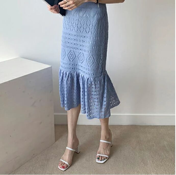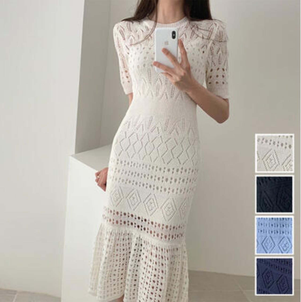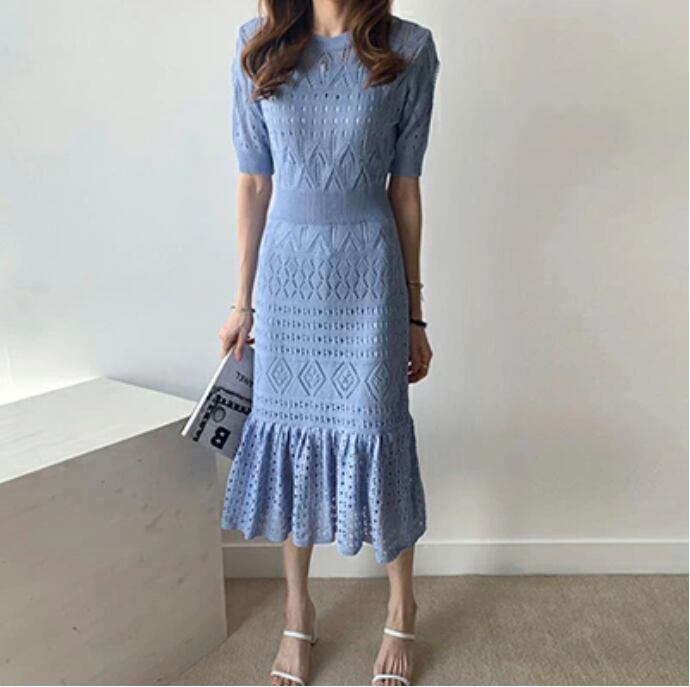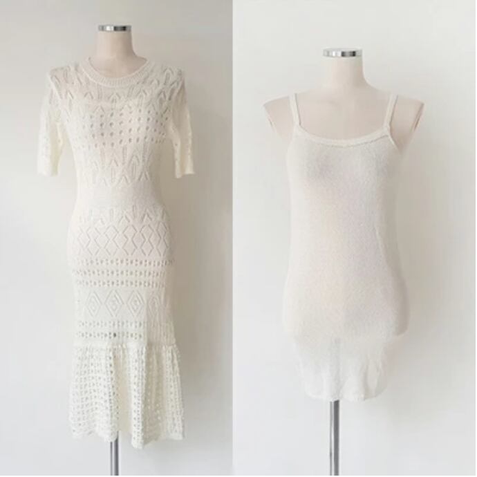 繊細なニットの編模様レースのようで上品なワンピース