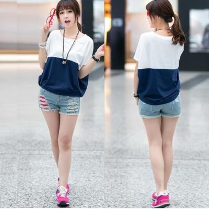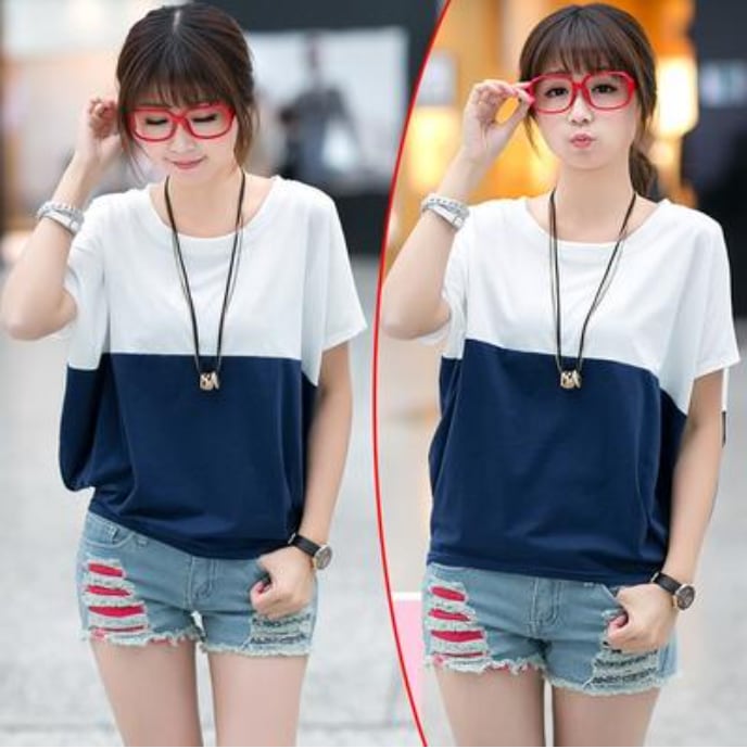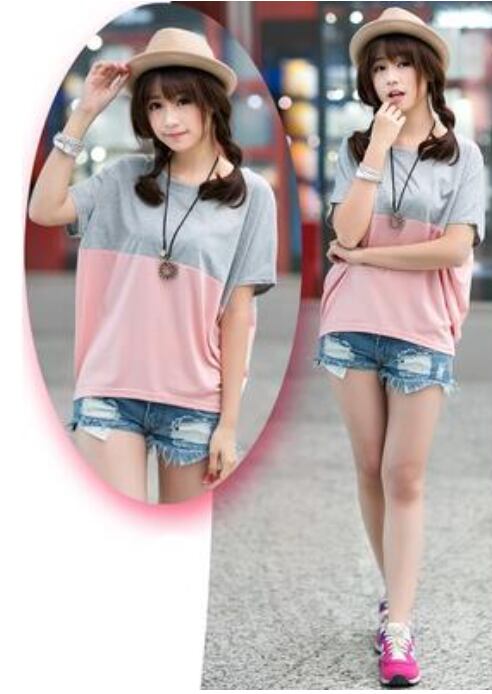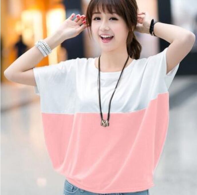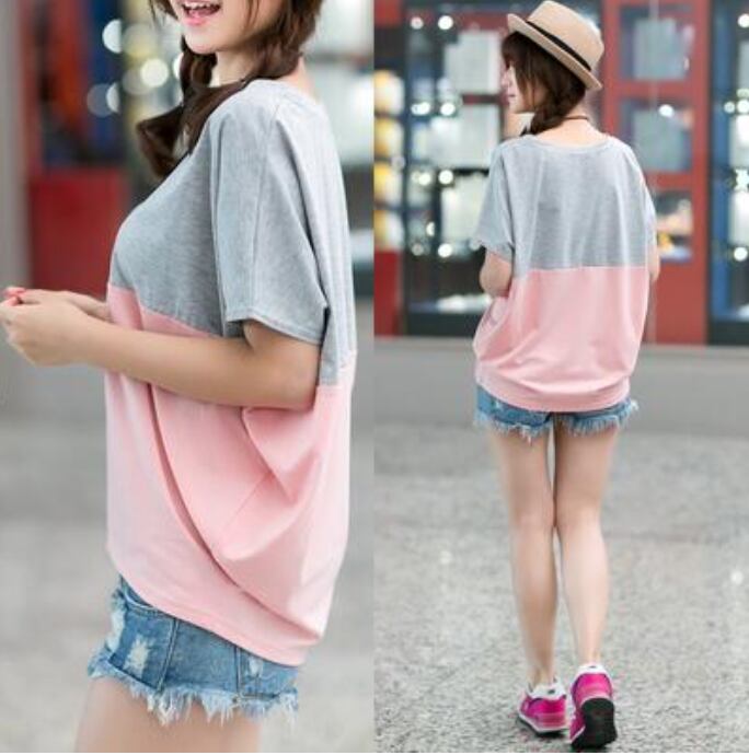 全3色 トップス レディース Tシャツ カジュアル おしゃれ 夏 春夏 春秋 可愛い バイカラー 半袖 カットソー ドルマンスリーブ ゆったり リラックス かっこいい 体型カバー シンプル 大きいサイズ ホワイト 白 ブルー 青 ピンク グレー 20代 30代 40代 50代