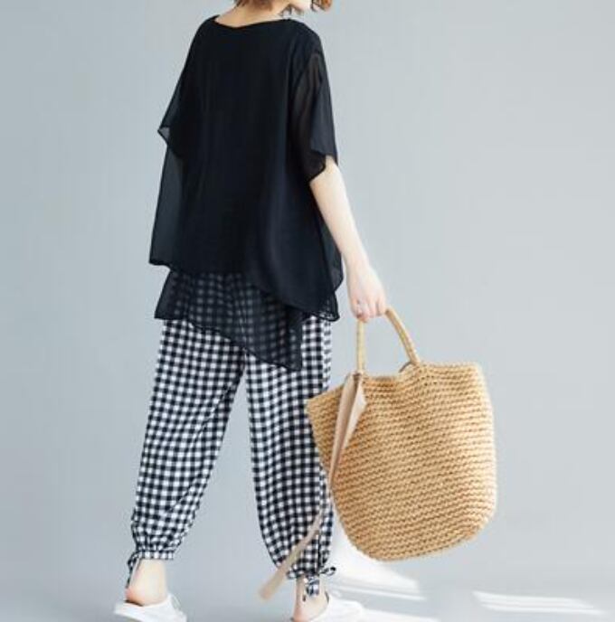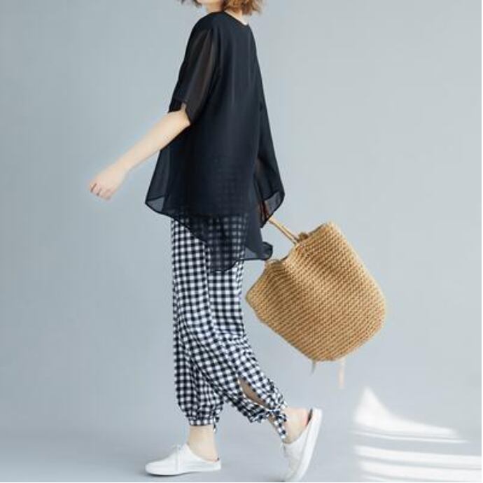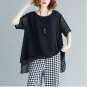 トップス レディース ブラウス カジュアル おしゃれ 夏 春夏 春秋 エレガント きれいめ 半袖 カットソー シアー ゆったり リラックス かっこいい 体型カバー Tシャツ フェミニン シンプル 透け感 エアリー ブラック 黒 20代 30代 40代 50代