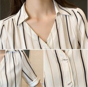 きちんと感のあるストライプ柄のシフォンブラウス。