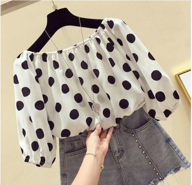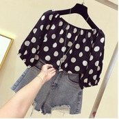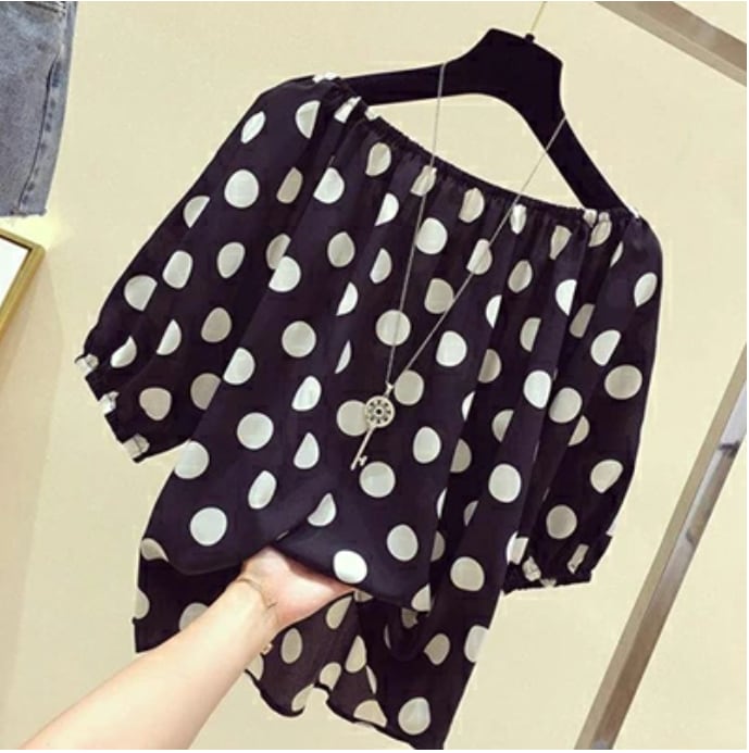 大きなドット柄がキュートなシフォンブラウス。