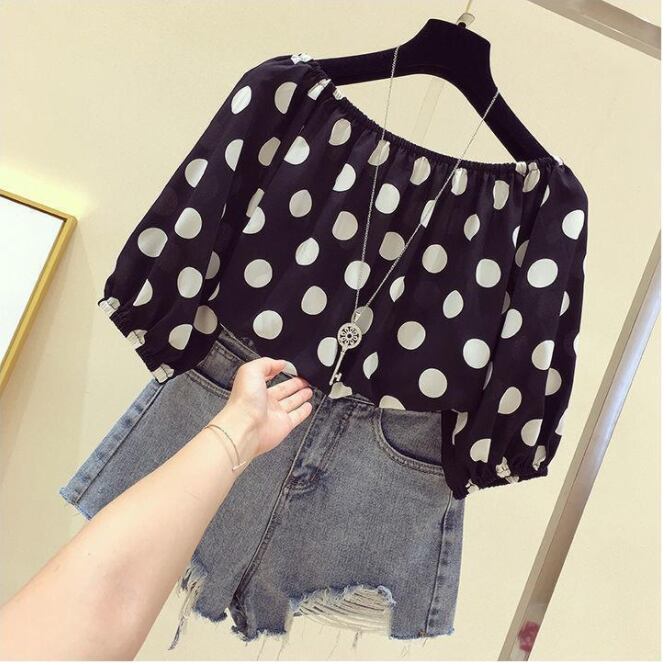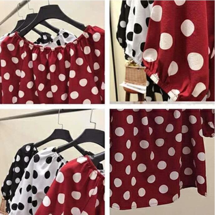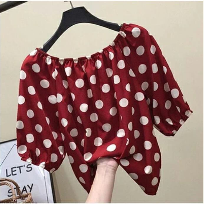 全3色 水玉 シフォン シャツ 大きいサイズ XL 2XL 3XL トップス レディース ブラウス きれいめ カジュアル おしゃれ 夏 春 夏 秋 かっこいい 半袖 エレガント ドット 開襟 水玉 涼しい フェミニン パフスリーブ ブラック ホワイト レッド 白 黒 赤 20代 30代 40代 50代