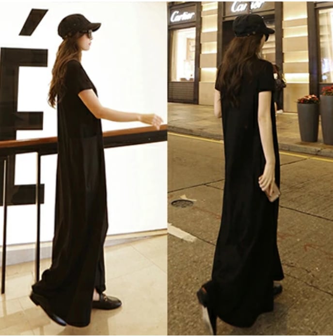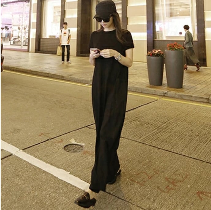 かっこいい ロングワンピースワンピース マキシ丈 カジュアル おしゃれ 夏 半袖 レディース 可愛い ワンピ ドレス 涼しい Aライン フェミニン シンプル ゆったり 体型カバー Tシャツワンピ 着痩せ スタイルアップ ベーシック 春夏 秋 ブラック 黒 20代 30代 40代 50代