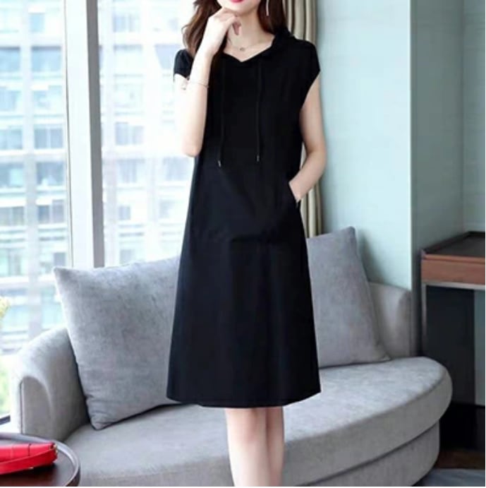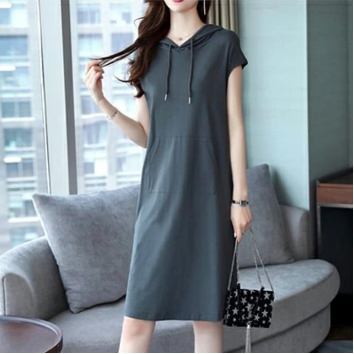 全2色 ワンピース ひざ丈 カジュアル おしゃれ 夏 半袖 レディース カジュアル ワンピ ドレス フーディ 涼しい Aライン Tシャツワンピ ゆったり 体型カバー 可愛い 春夏 秋 大きいサイズ XL 2XL ブラック 黒 グレー 20代 30代 40代 50代