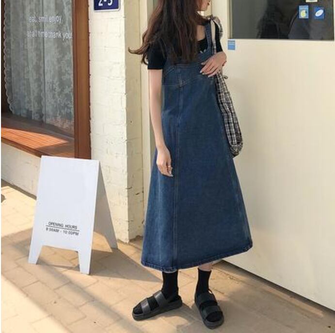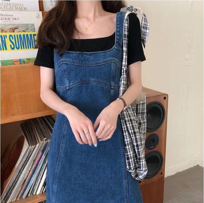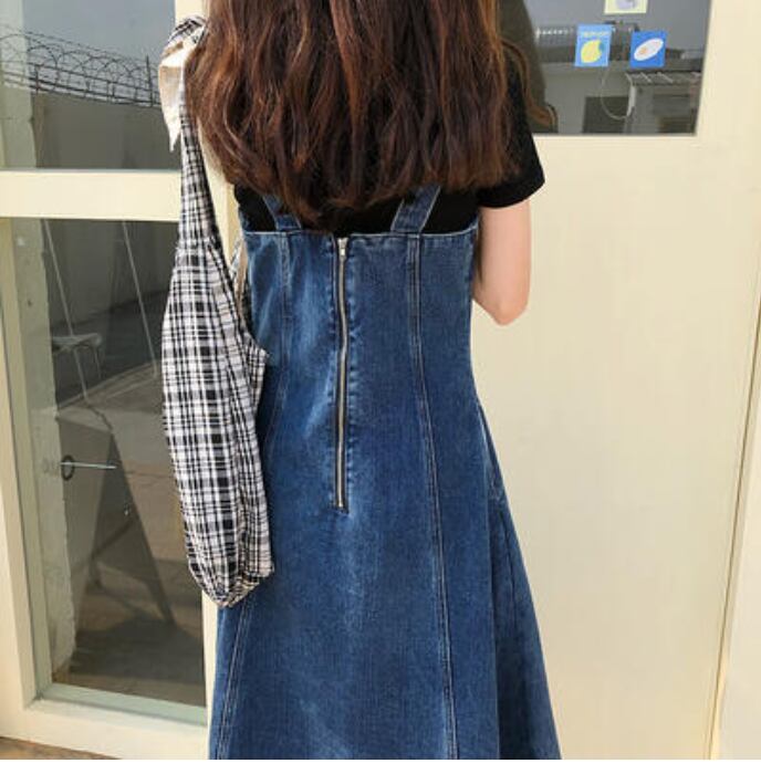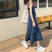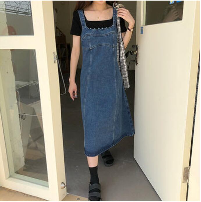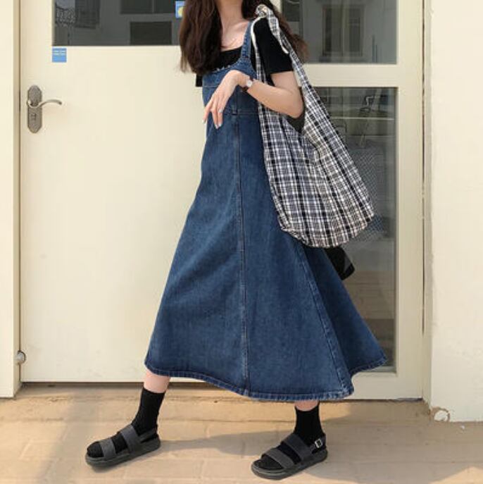 ワンピース ミモレ丈 ジャンパースカート カジュアル おしゃれ サロペットスカート 夏 キャミワンピース デニム レディース 可愛い ワンピ ドレス 体型カバー Aライン フェミニン 春 春夏 秋 シンプル オールシーズン 着回し デイリー ブルー 20代 30代 40代 50代