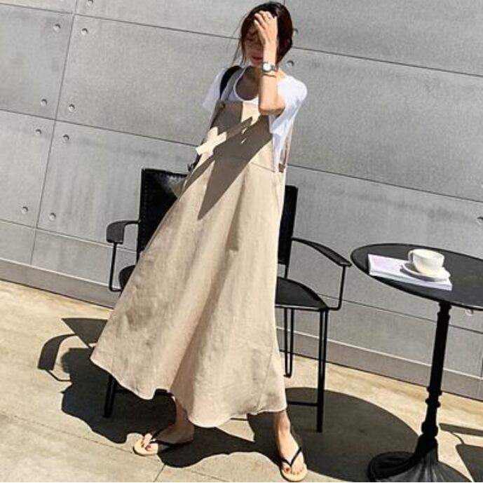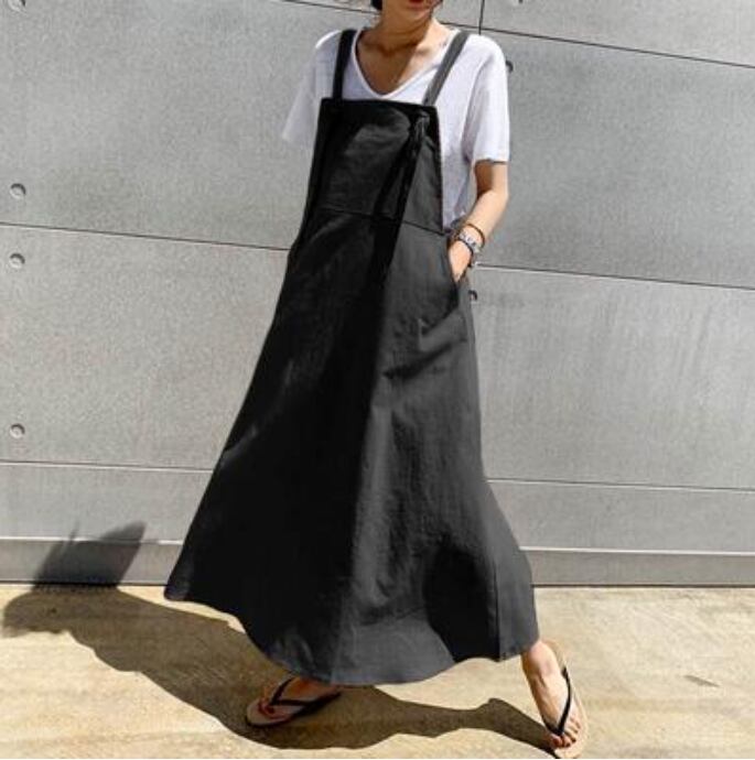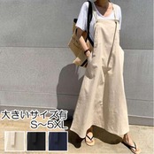 全3色 ワンピース ロング丈 サロペットスカート カジュアル おしゃれ 夏 ロングワンピ ジャンパースカート レディース 可愛い ワンピ ドレス シンプル 体型カバー ゆったり 春 春夏 秋 ベーシック 着回し 大きいサイズ ネイビー ブラック 黒 ベージュ 20代 30代 40代 50代