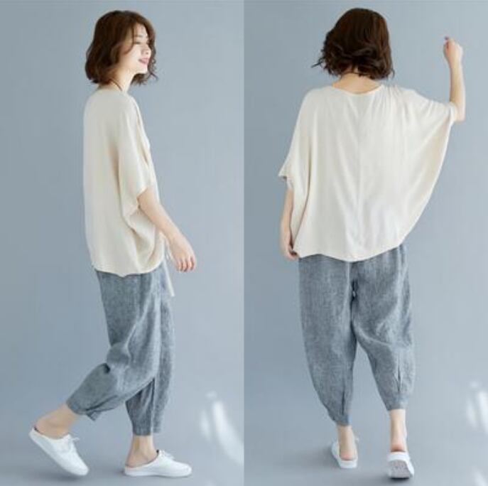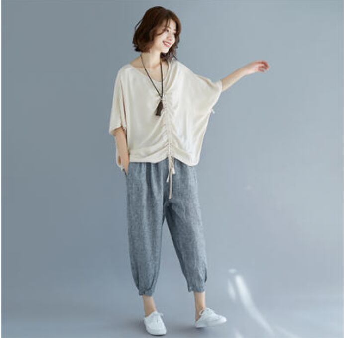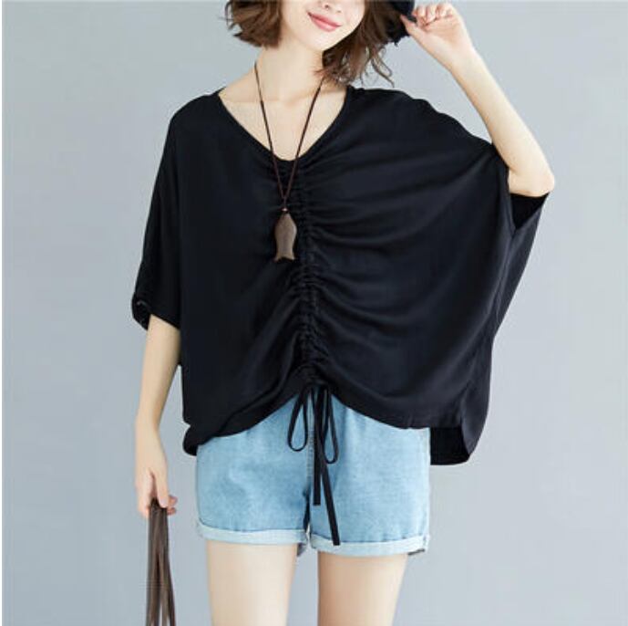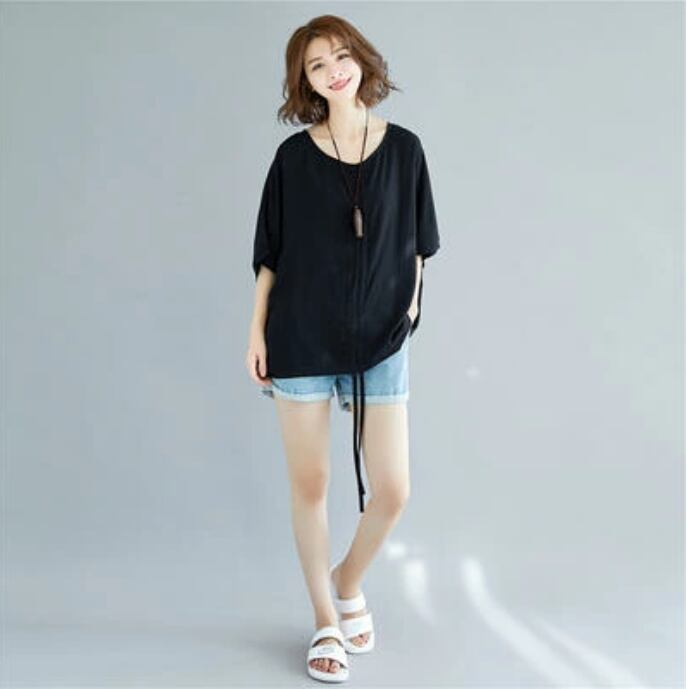 全2色 おしゃれ フェミニン カジュアル シンプル麻 リネン カットソー 薄手 ナチュラル 五分袖 涼しい ドルマンスリーブ リラックス レディース Tシャツ トップス シャーリング 抜け感 こなれ感 ホワイト 白 ブラック 黒 リネン混 春 夏 秋 20代 30代 40代 50代