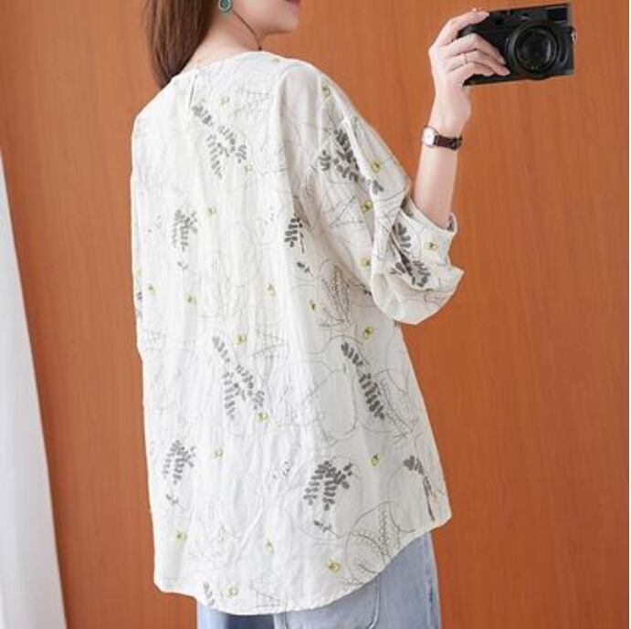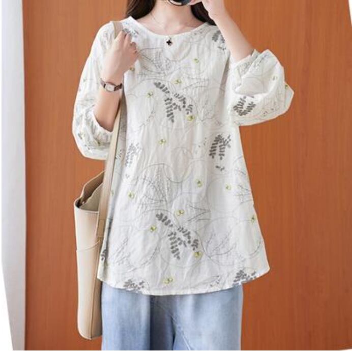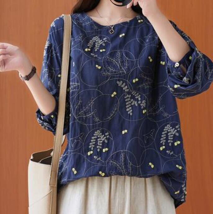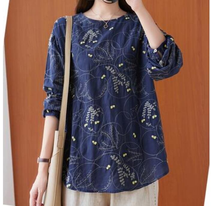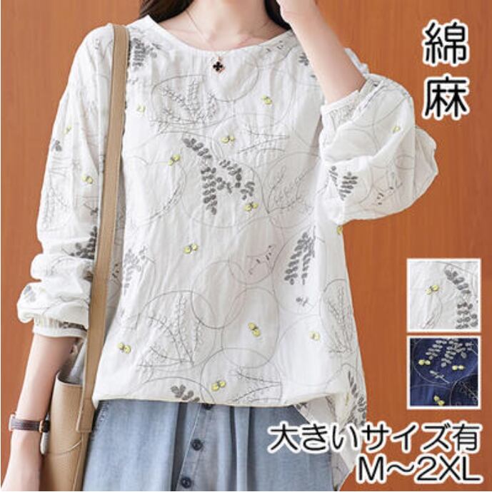 全2色 麻 リネン カットソー 薄手 ナチュラル 長袖 涼しい リネン混 刺繍 リラックス 春 夏 春夏 春秋 レディース Tシャツ トップス おしゃれ フェミニン カジュアル シンプル ブラウス シャツ こなれ感 大きいサイズ ホワイト 白 ネイビー 20代 30代 40代 50代