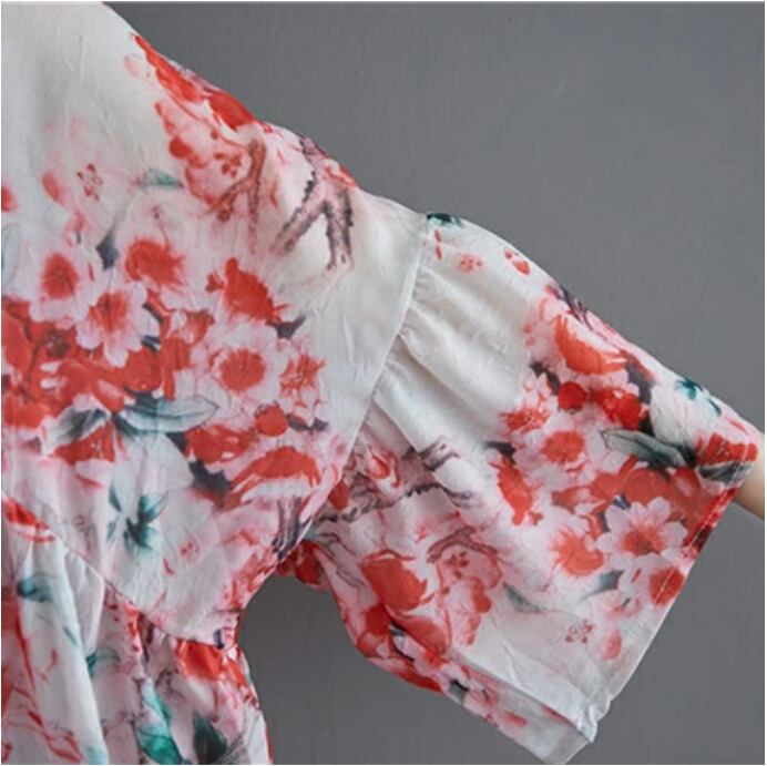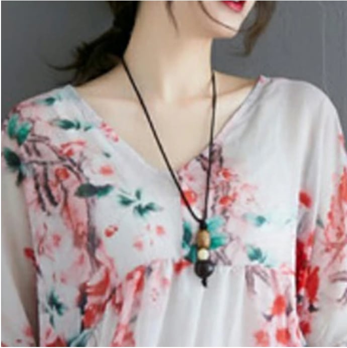 きれいめ フェミニン カットソー麻 リネン トップス レディース ブラウス シャツ カジュアル 七分袖 花柄 おしゃれ リネン コットン 綿 可愛い 春 夏 秋 ゆったり 体型カバー 薄手 フレア ボタニカル リネン混 20代 30代 40代 50代 レトロお出かけ コーデ リゾート