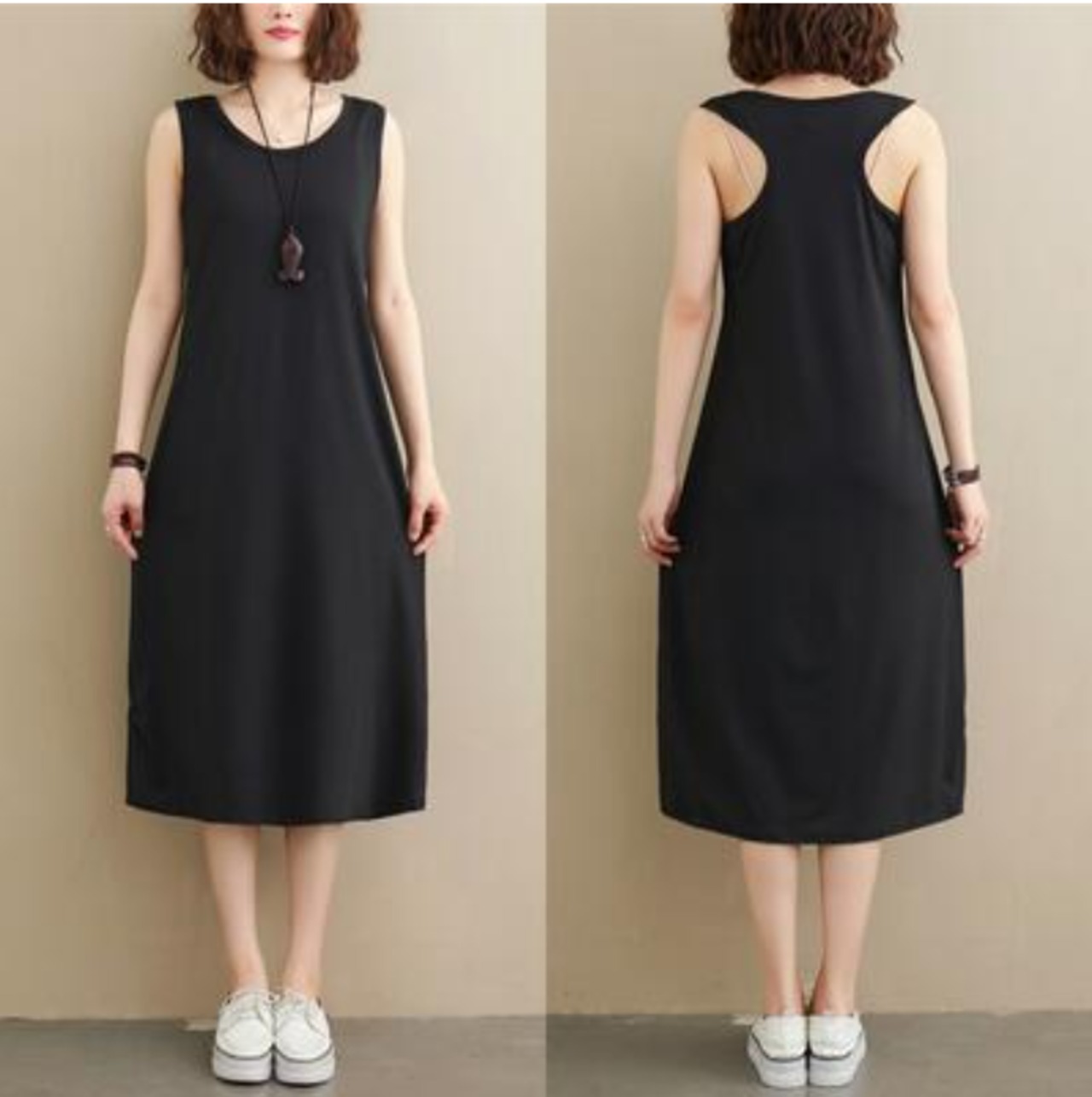 シンプルなワンピースとレーストップスのセットアップ。