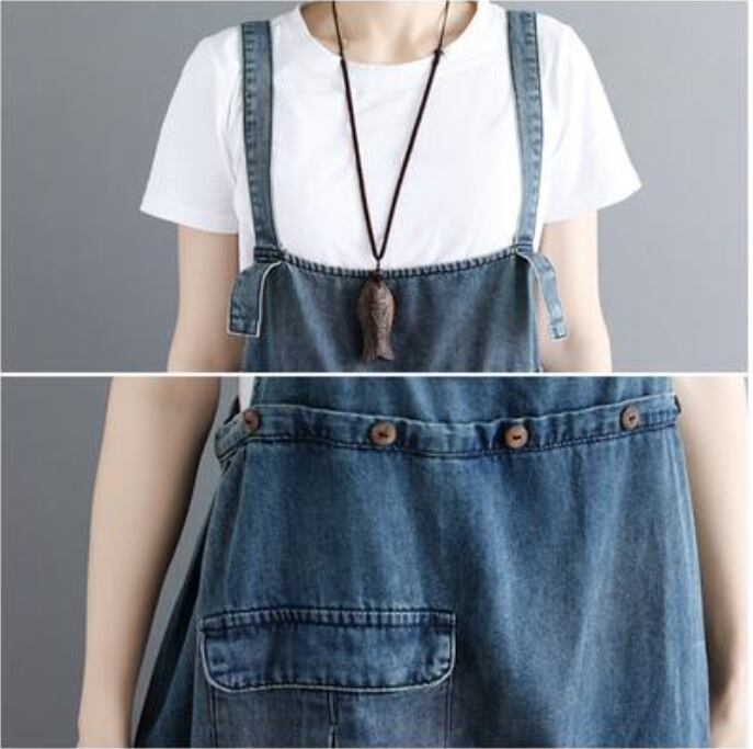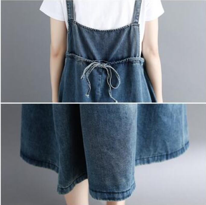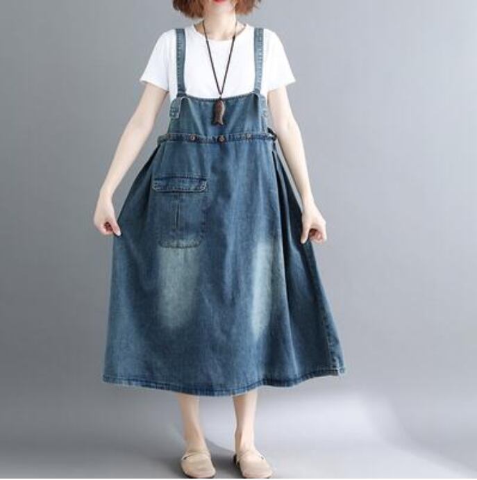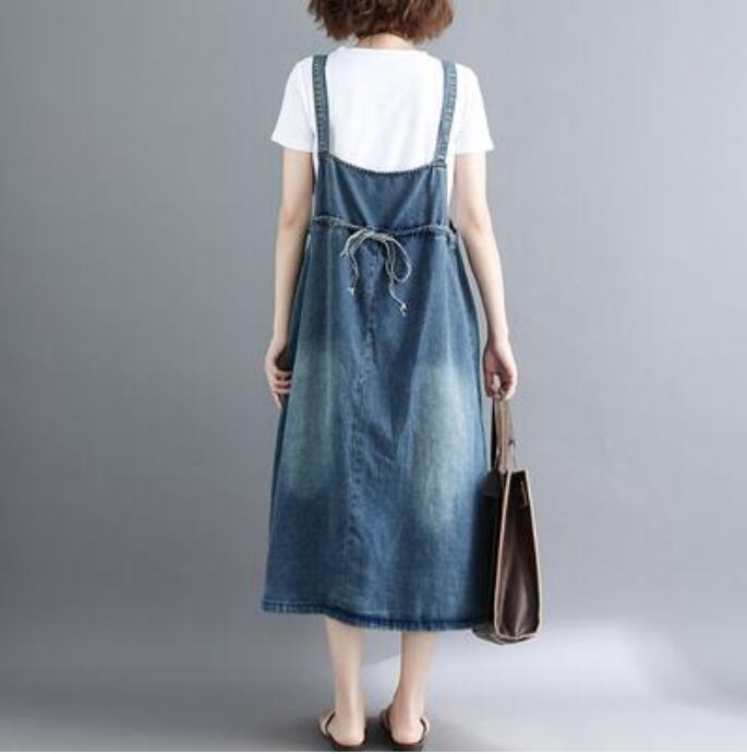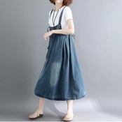 サロペットスカート デニム ワンピース ミモレ丈 カジュアル おしゃれ 夏 ロングワンピ ジャンパースカート レディース 可愛い ワンピ ドレス シンプル かっこいい 体型カバー ゆったり 春 春夏 秋 ベーシック ウエストリボン オールシーズン ブルー 20代 30代 40代 50代