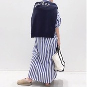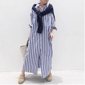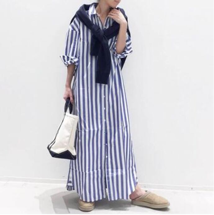 爽やかな印象のストライプ柄シャツワンピース。