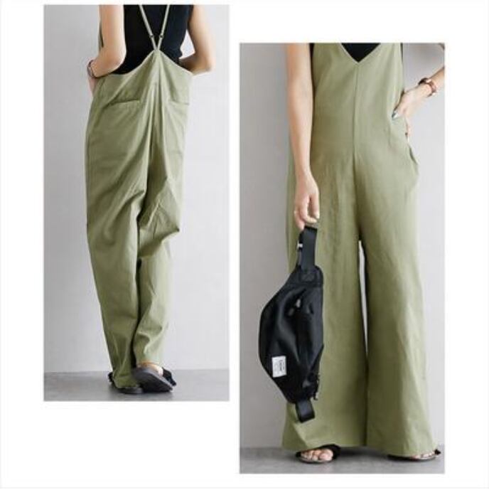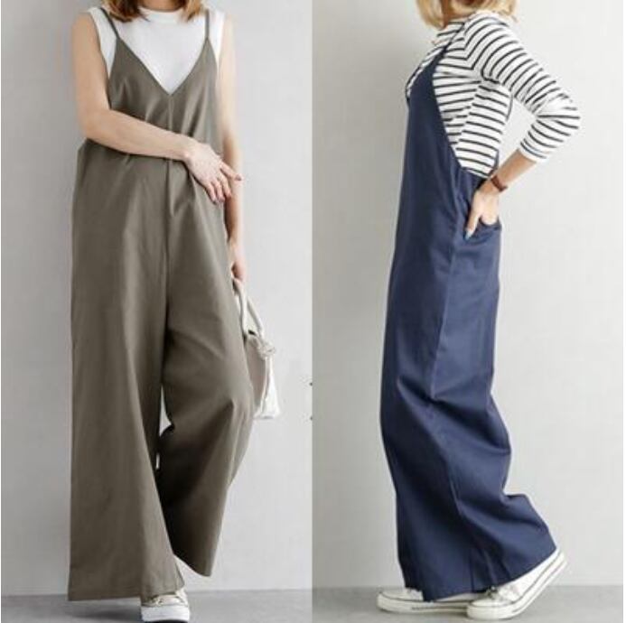 全4色 かっこいい シンプル ゆったり パンツ コーデオールインワン パンツ サロペット 春 夏 レディース カジュアル おしゃれ 春秋 春夏 チェック ロング丈 シンプル 体型カバー リラックス 可愛い フェミニン ワイドパンツ グレー ネイビー カーキ 20代 30代 40代 50代