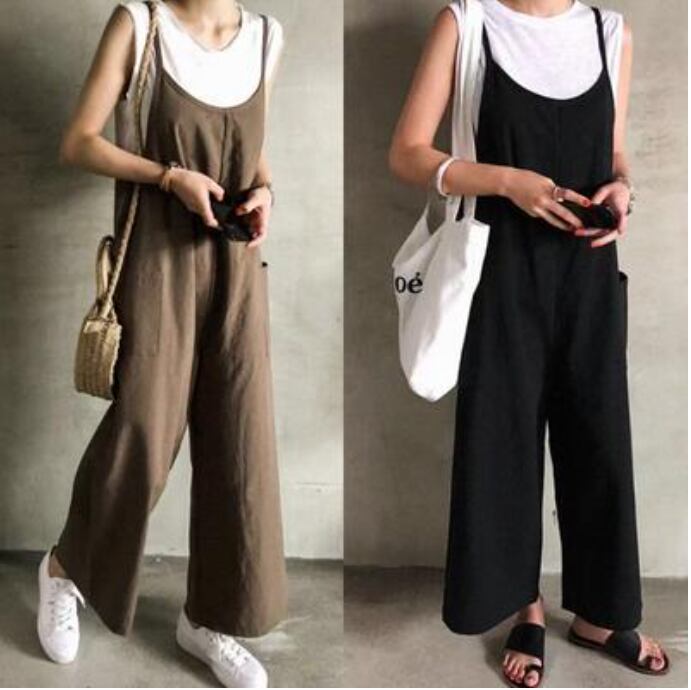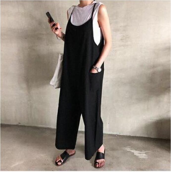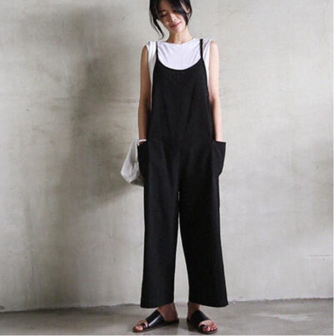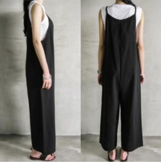 全2色 サロペットパンツ パンツ オーバーオール ロング丈 カジュアル おしゃれ 夏 レディース オールインワン 可愛い シンプル 体型カバー ゆったり 春 春夏 秋 ベーシック かっこいい フェミニン リラックス ナチュラル ブラック 黒 ブラウン 20代 30代 40代 50代