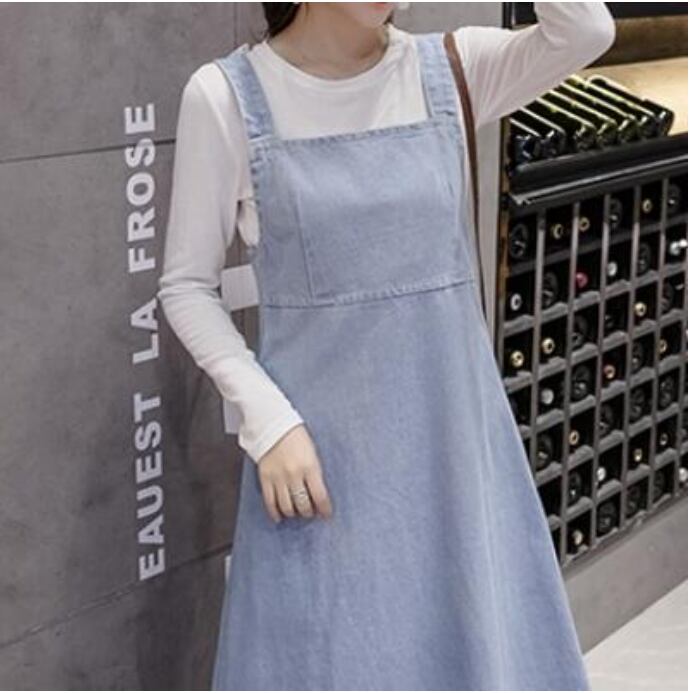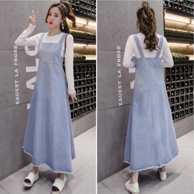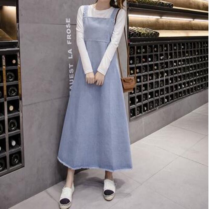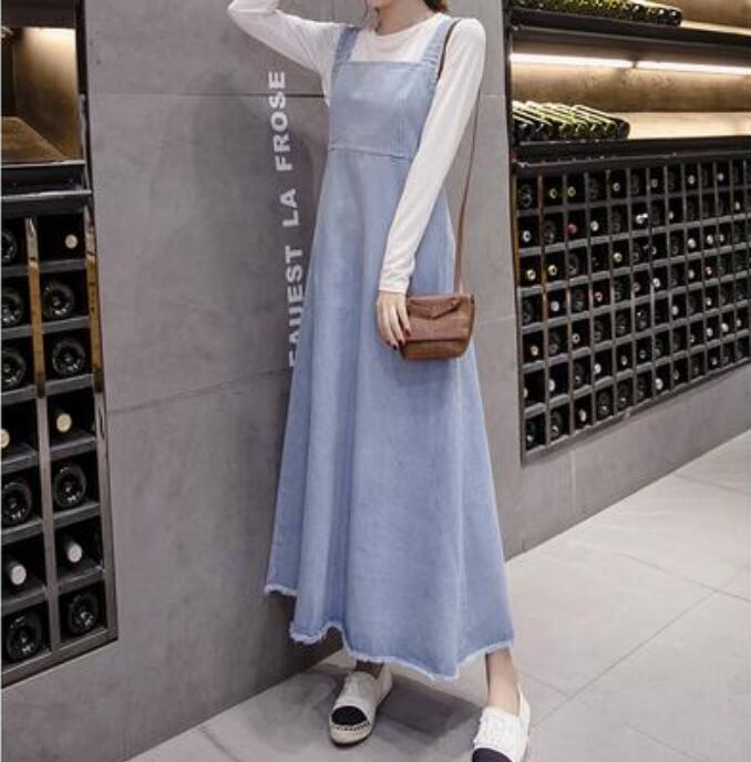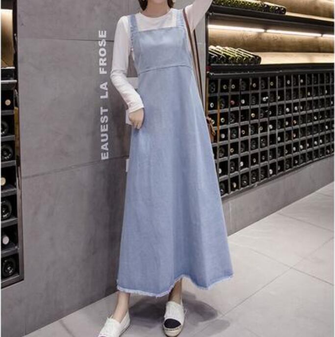 可愛い ロングワンピースサロペットスカート デニム ワンピース ロング丈 カジュアル おしゃれ 夏 ジャンパースカート レディース ワンピ ドレス シンプル 体型カバー ゆったり 春 夏 秋 ベーシック オールシーズン 大きいサイズ ブルー 20代 30代 40代 50代