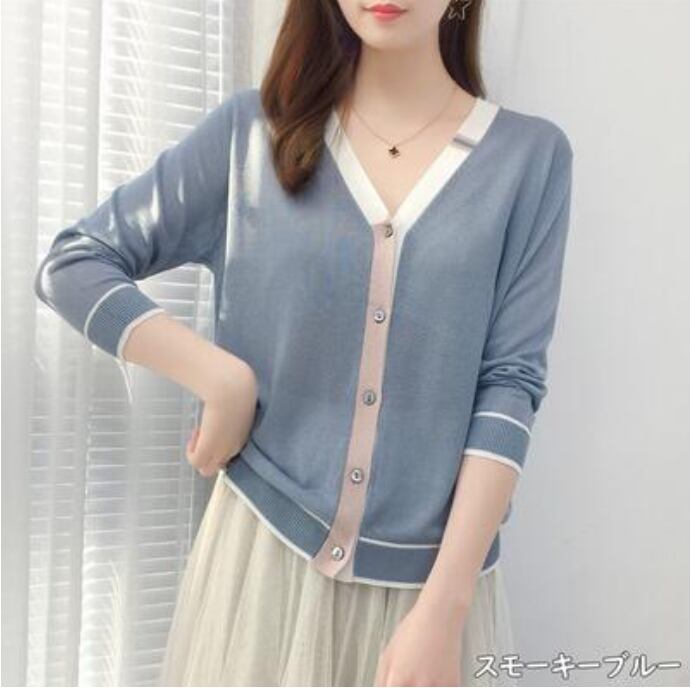 全4色 カーディガン レディース きれいめ カジュアル 夏 おしゃれ ニット 薄手 ナチュラル 長袖 マルチカラー シンプル ベーシック 日焼け防止 お出掛け 羽織 フェミニン 春 春夏 春秋 オフィス ネイビー ホワイト 白 ピンク ブルー 20代 30代 40代 50代