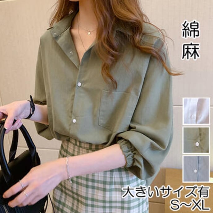 全3色 おしゃれ フェミニン カジュアル シンプル 麻 リネン シャツ ブラウス 薄手 ナチュラル 七分袖 涼しい リネン混 リラックス 春 夏 春夏 春秋 レディース トップス ベーシック こなれ感 大きいサイズ オフィス ホワイト 白 グリーン ブルー 20代 30代 40代 50代
