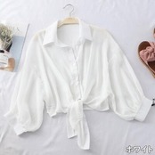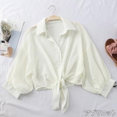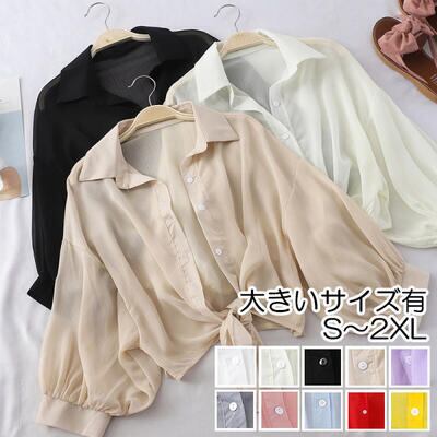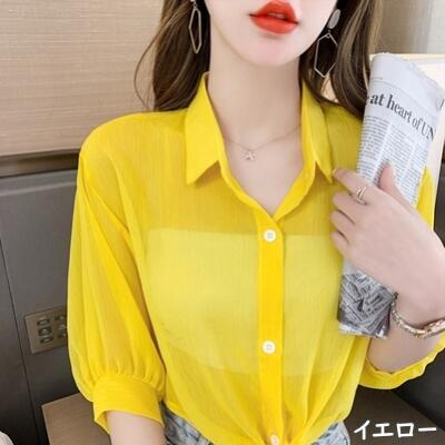 全10色 フェミニン 可愛い カットソートップス レディース ショート丈 ブラウス シャツ きれいめ カジュアル 七分袖 シアー おしゃれ エレガント 涼しい シンプル ナチュラル 透け感 ホワイト ベージュ ブラック 黒 イエロー 青 赤 グレー ピンク 春 夏 秋 20代 30代 40代 50代