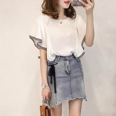 ボリュームのあるフリルスリーブが可愛いトップス。
