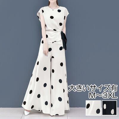 全2色 ゆったり 体型カバー モノトーンセットアップ レディース カジュアル 2点セット ブラウス 半袖 ガウチョパンツ シフォン おしゃれ 夏 レディース カジュアル ドレス バイカラー 涼しい Aライン ロング丈 可愛い 春夏 秋 大きいサイズ XL 2XL 3XL ブラック 黒 コットン 綿 20代 30代 40代 50代 コーデ 上品