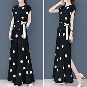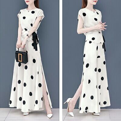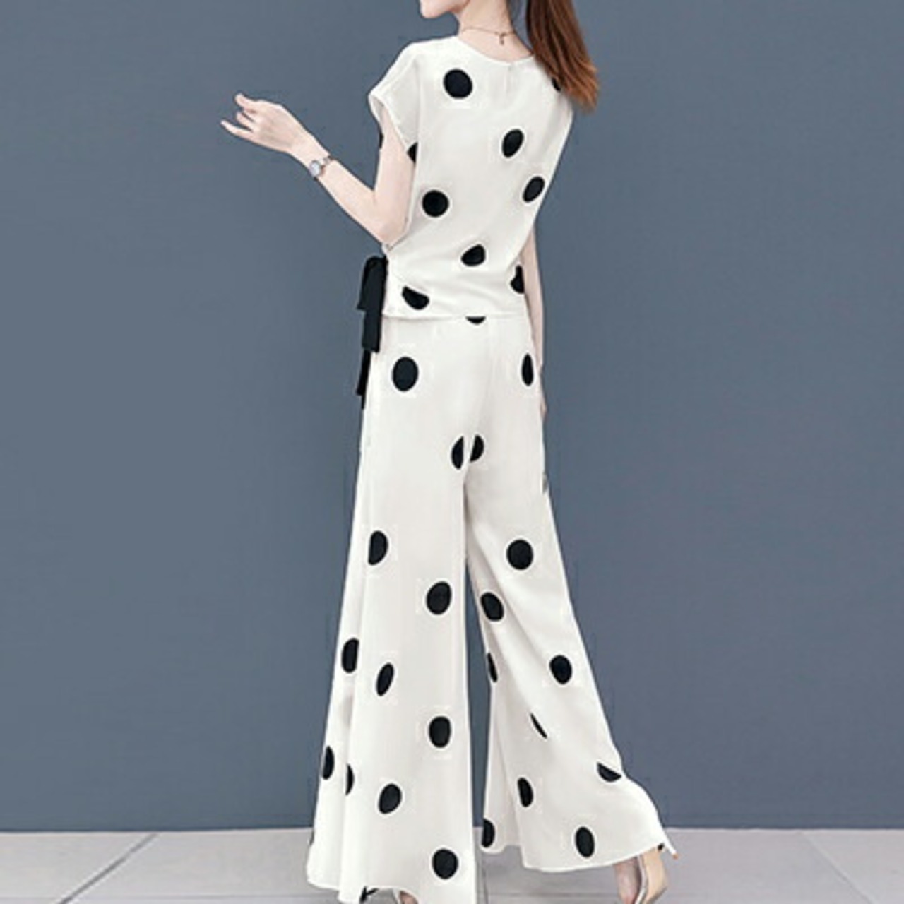 ドットが印象的なパンツセットアップ。