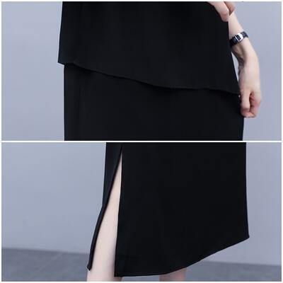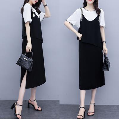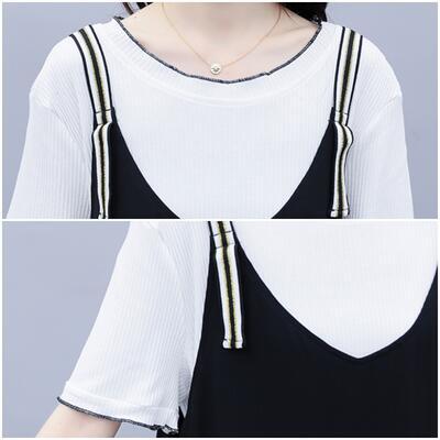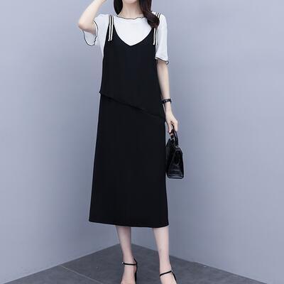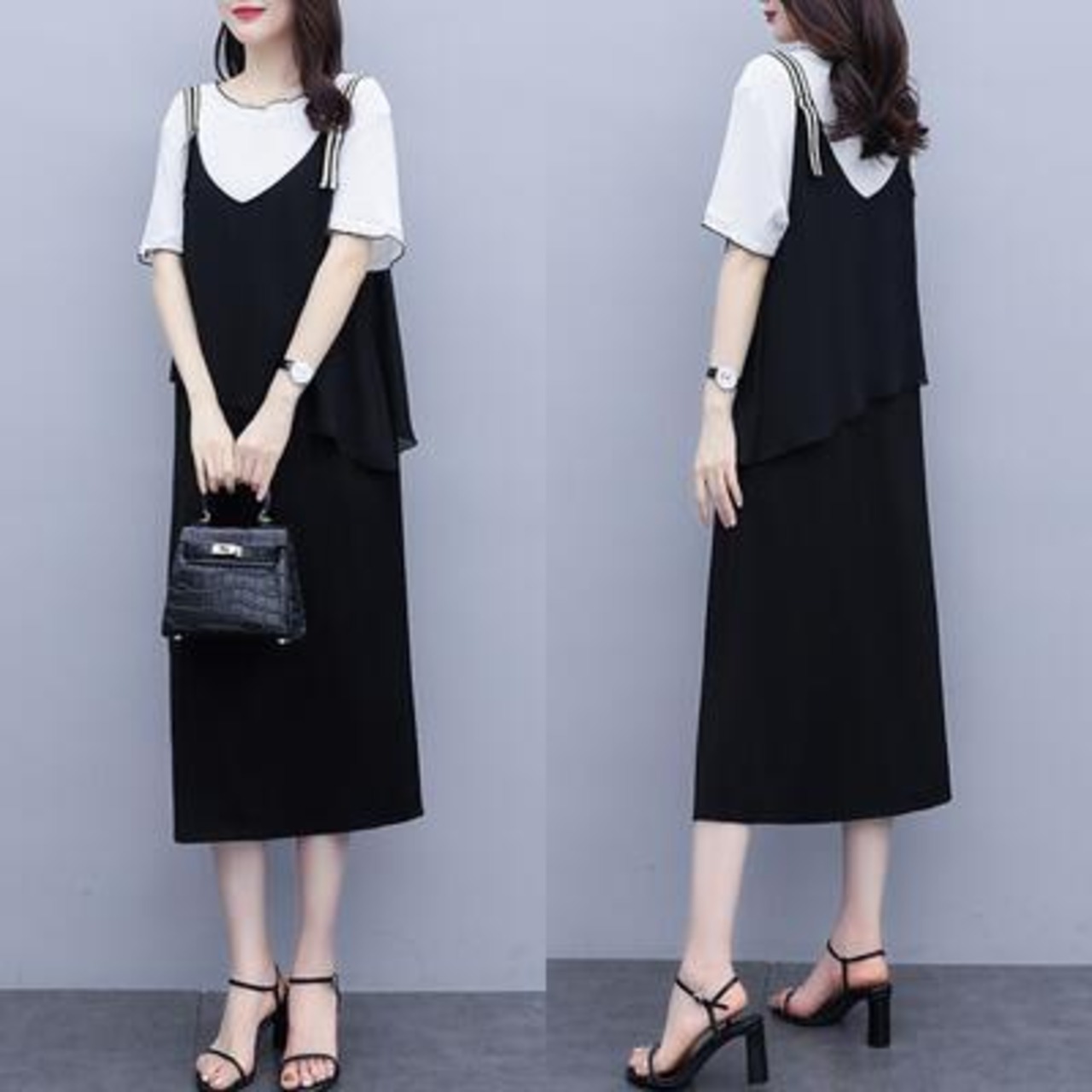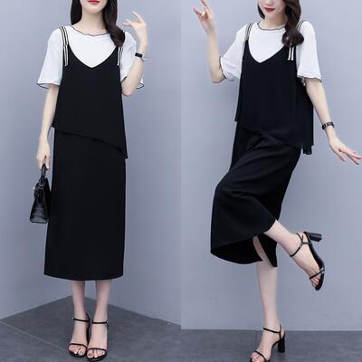 セットアップ 2点セット サロペットスカート ワンピース ミモレ丈 Tシャツ 半袖 カットソー フリル カジュアル おしゃれ 夏 レディース オールインワン 可愛い きれいめ 春 春夏 秋 フェミニン 大きいサイズ ブラック 黒 ホワイト 白 20代 30代 40代 50代