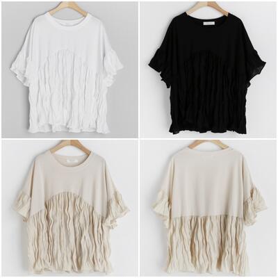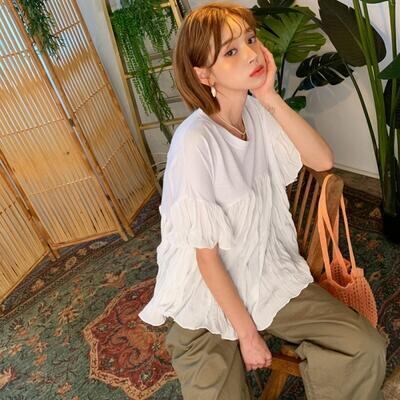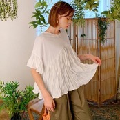 しわ加工が施された柔らかい表情の切り替えトップス。