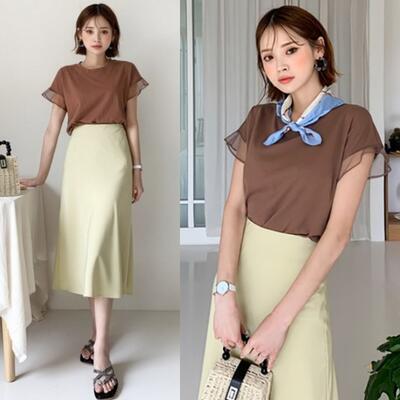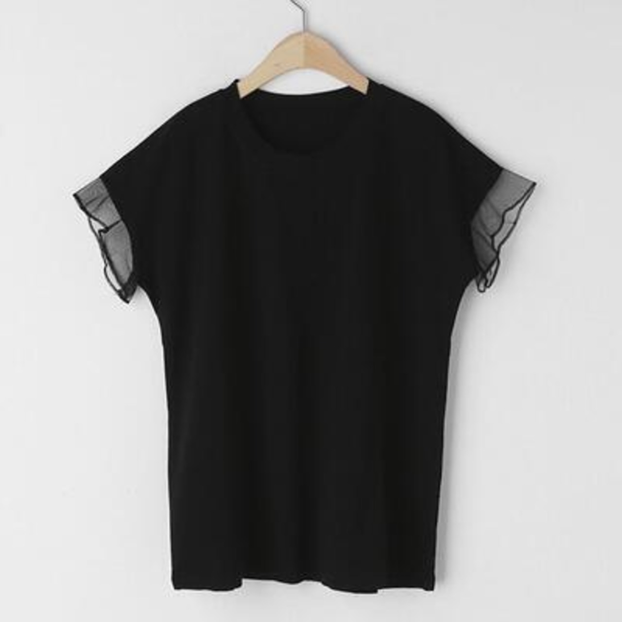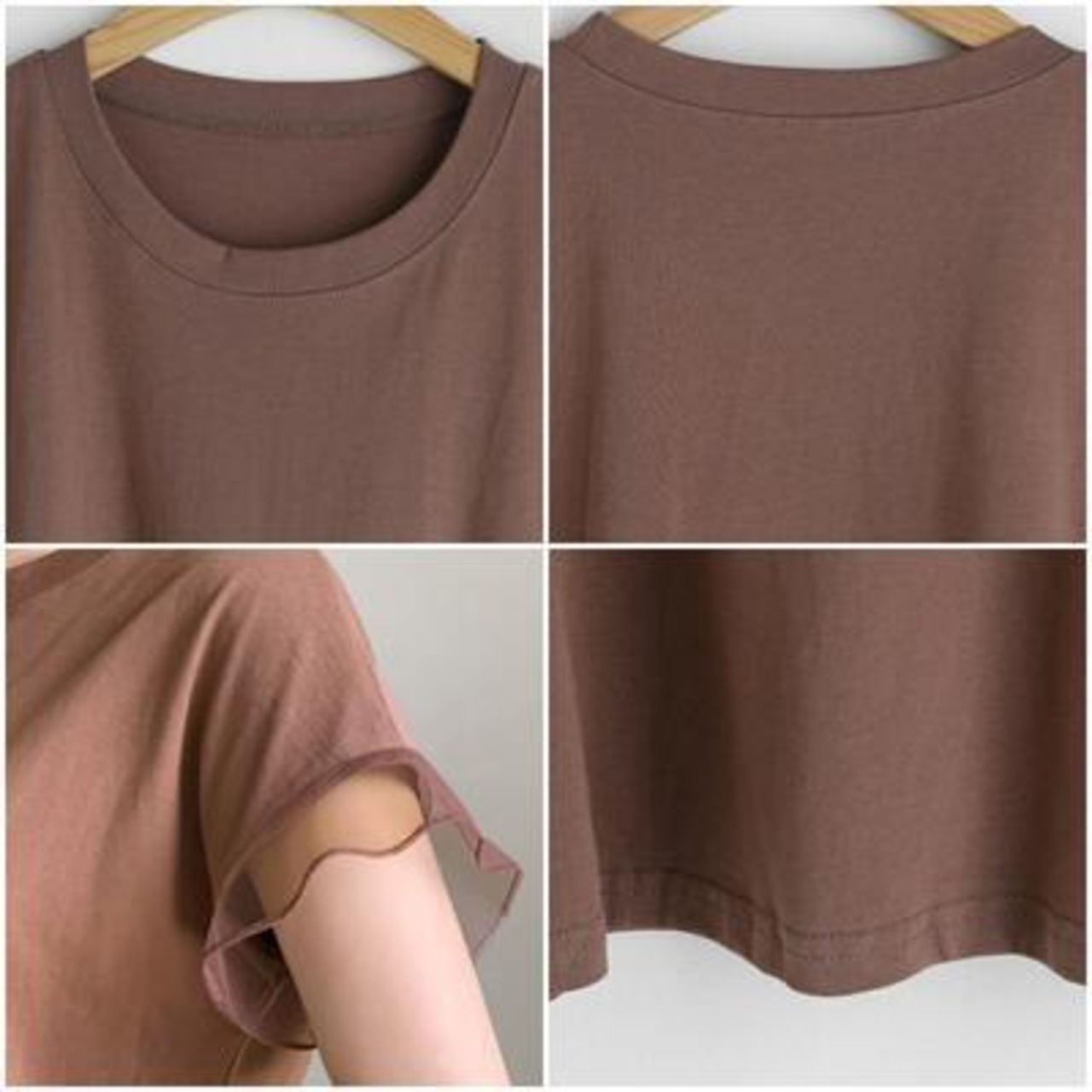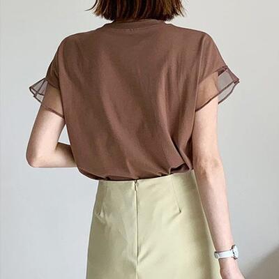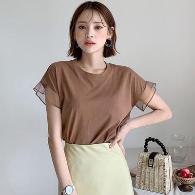 全4色 トップス レディース Tシャツ きれいめ カジュアル 半袖 夏 春 フリル おしゃれ 可愛い フェミニン 春夏 春秋 秋 涼しい 透け感 シンプル 抜け感 ナチュラル こなれ感 ベーシック ブラウン ブラック 黒 ピンク ホワイト 白 20代 30代 40代 50代