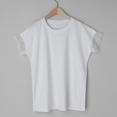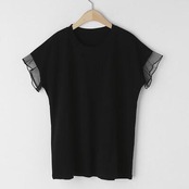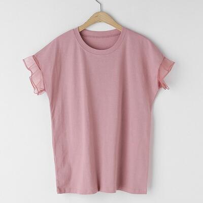 袖のフリルが大人可愛いクルーネックTシャツ。
