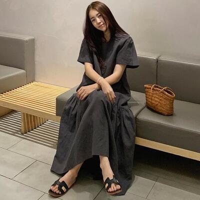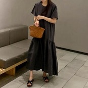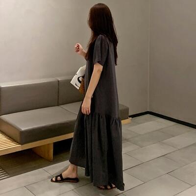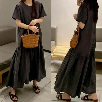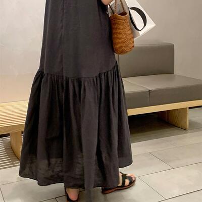 ティアード ワンピース リネン ナチュラル 薄手 涼しい コットン リネン混 綿 麻 半袖 体型カバー ロング丈 春 夏 春夏 カジュアル おしゃれ レディース ワンピ ドレス ゆったり リラックス 体型カバー 可愛い こなれ感 シンプル 大きいサイズ グレー 20代 30代 40代 50代