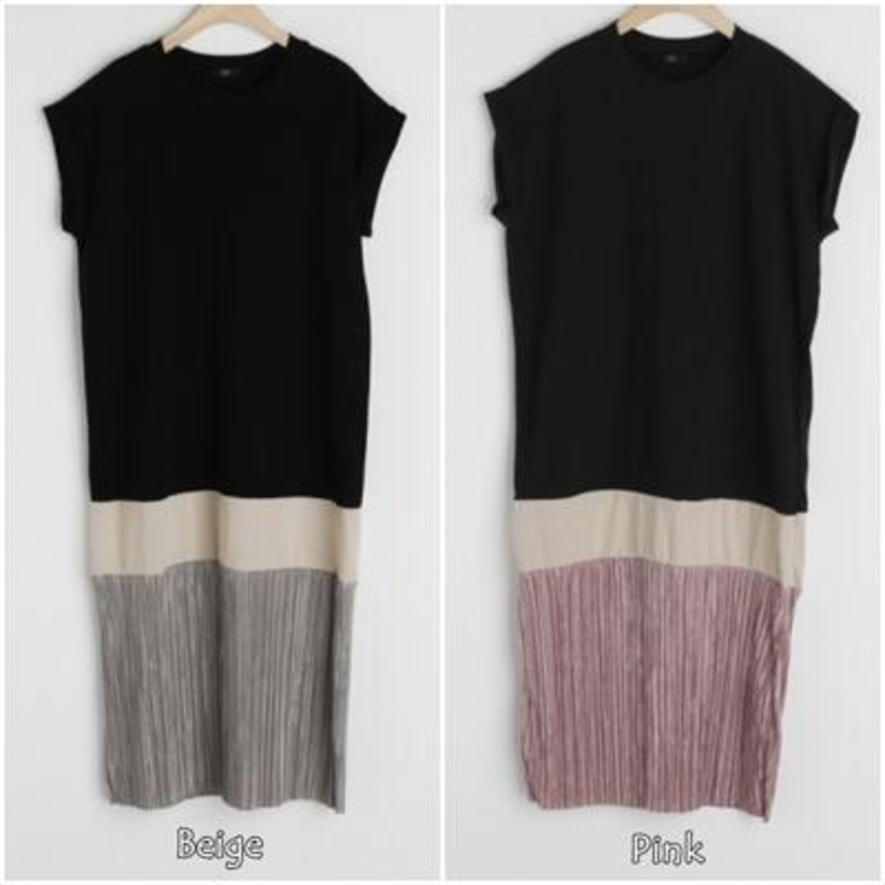 全3色 きれいめ フェミニン プリーツ ナチュラルワンピース 切り替え フレンチスリーブ レディース エレガント カジュアル ミモレ丈 半袖 おしゃれ 可愛い ワンピ ドレス Tシャツワンピ マルチカラー ブラック 黒 ピンク ベージュ 春 夏 秋 20代 30代 40代 50代