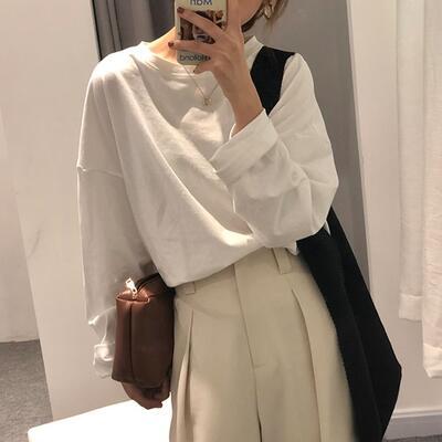 全2色 トップス レディース Tシャツ カジュアル 長袖 夏 春 ロゴ おしゃれ 可愛い かっこいい 春夏 春秋 秋 ロンT シンプル 抜け感 ナチュラル こなれ感 ベーシック ボーイッシュ ゆったり 体型カバー ブラック 黒 ホワイト 白 20代 30代 40代 50代