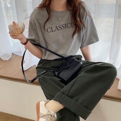 全3色 トップス レディース Tシャツ カジュアル 半袖 夏 春 ロゴ おしゃれ 可愛い かっこいい 春夏 春秋 秋 シンプル 抜け感 ナチュラル こなれ感 ベーシック ボーイッシュ クルーネック グレー ブラック 黒 ホワイト 白 20代 30代 40代 50代