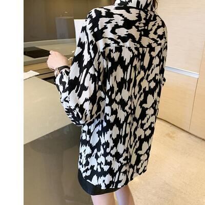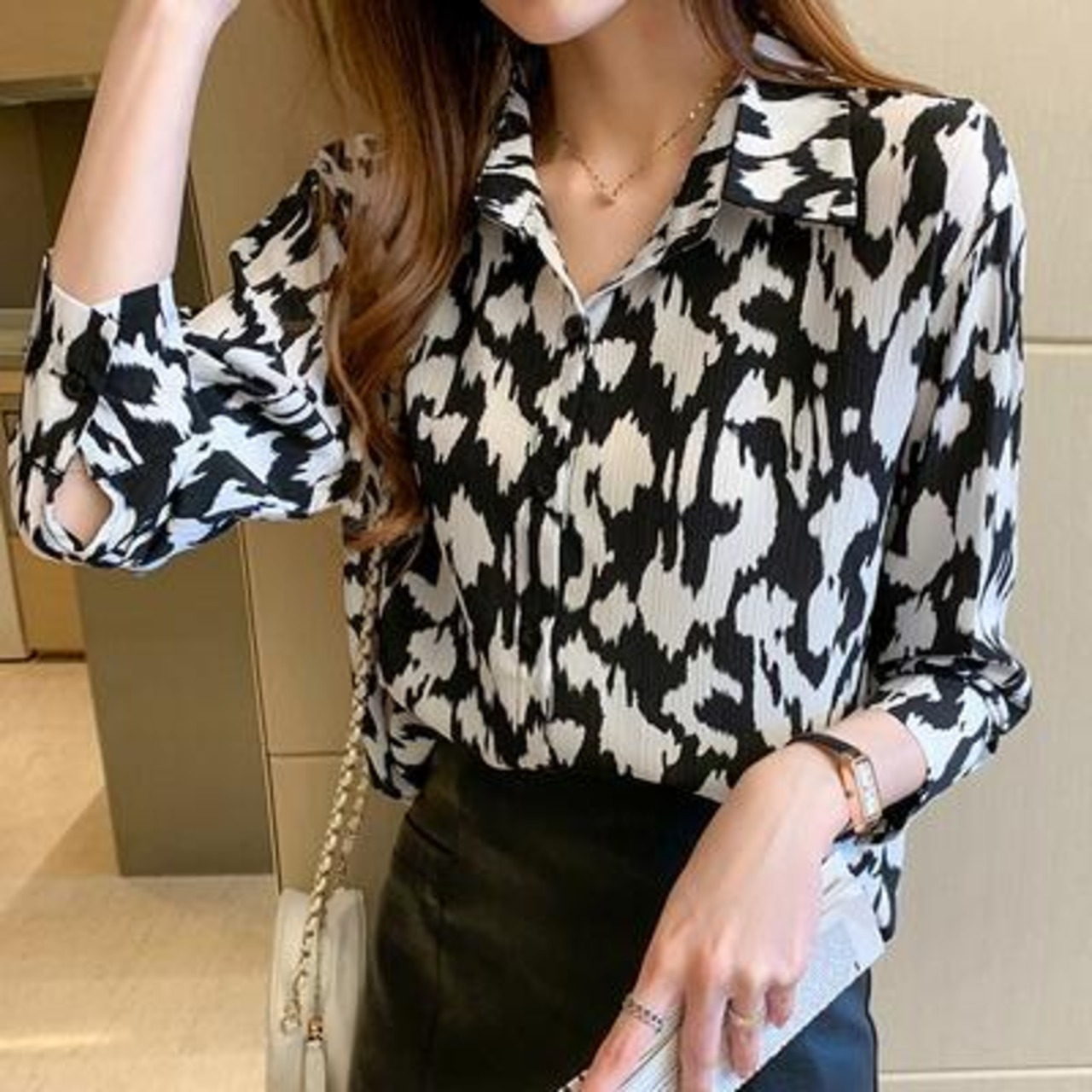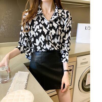 トップス レディース ブラウス シャツ 長袖 エレガント フェミニン カジュアル 夏 春 おしゃれ 可愛い かっこいい 春夏 春秋 秋 レオパード きれいめ ビンテージ シフォン オフィス 大きいサイズ ブラック 黒 20代 30代 40代 50代