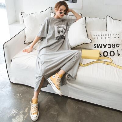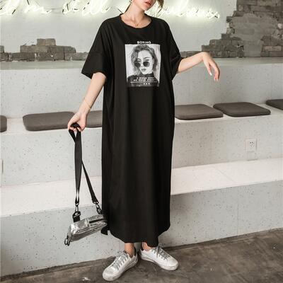 全2色 ゆったり リラックス 大きいサイズワンピース ロング丈 エレガント カジュアル 半袖 おしゃれ レディース 可愛い ワンピ ドレス Tシャツワンピ シンプル フォトプリント フェミニン オーバーサイズ グレー ブラック 黒 春 夏 秋 20代 30代 40代 50代