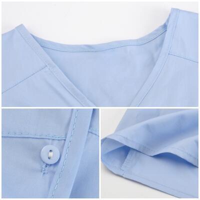 ライトブルーの爽やかで涼し気なVネックワンピース。